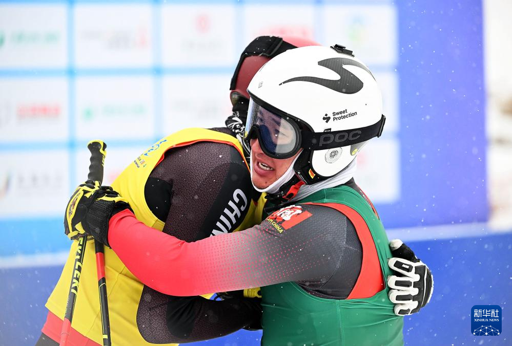 2月20日,吉林队选手哈斯提尔·阿德力江(右)和队友波拉夏克·波拉提在比赛后拥抱。新华社记者 赵子硕 摄