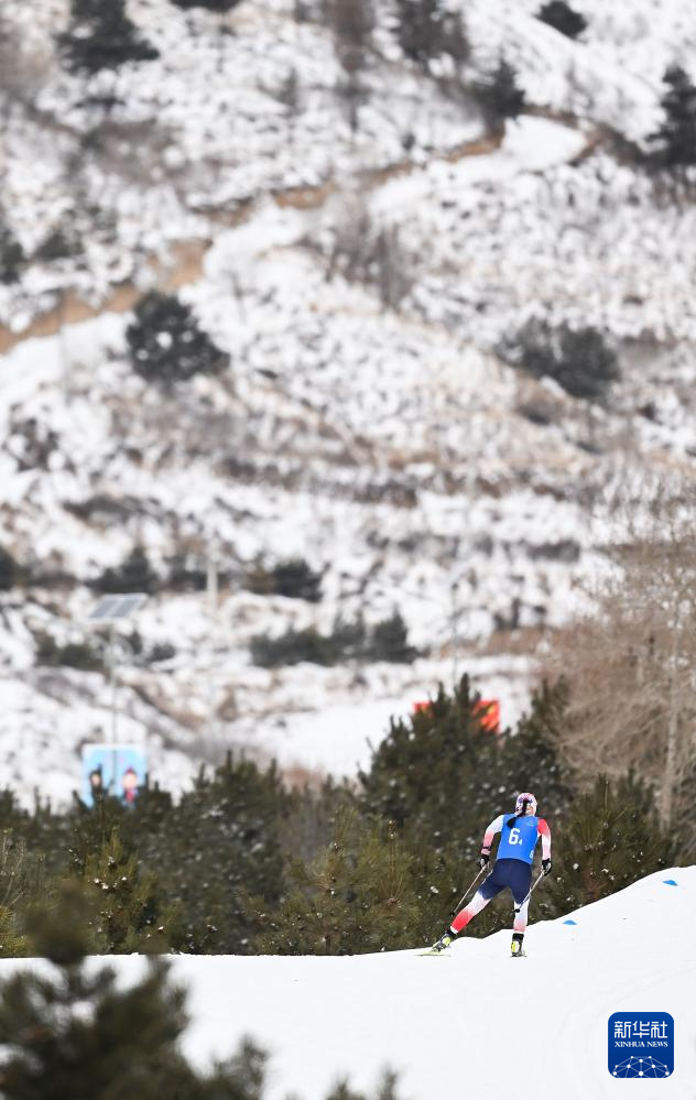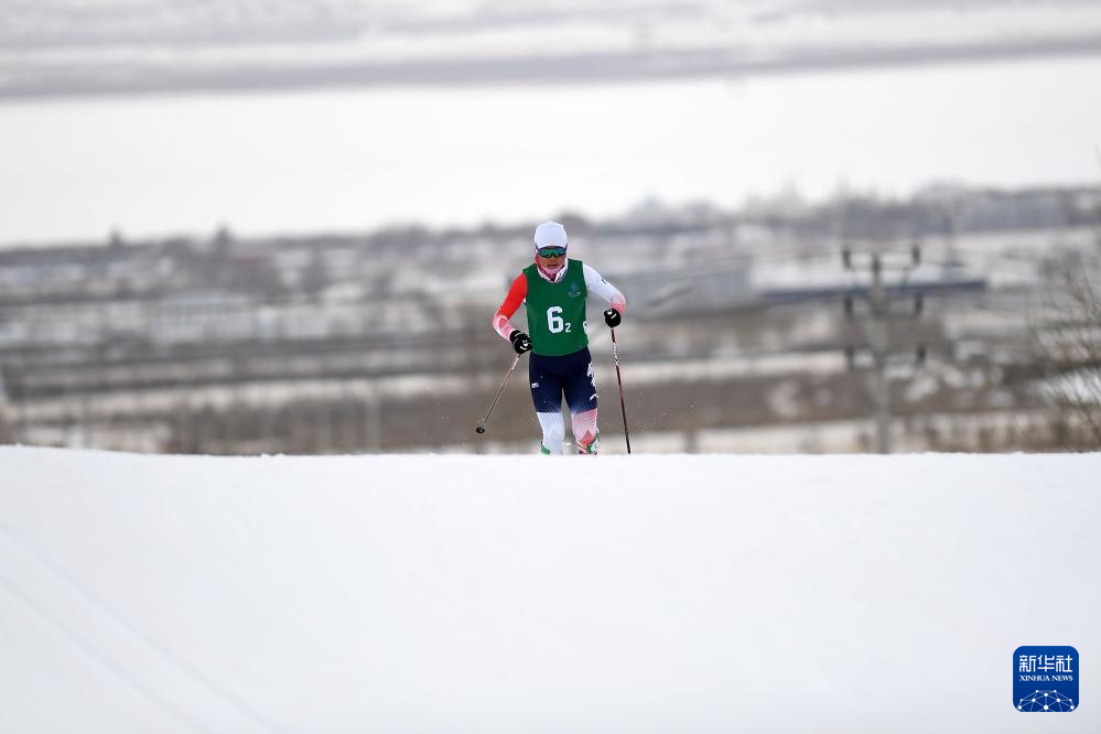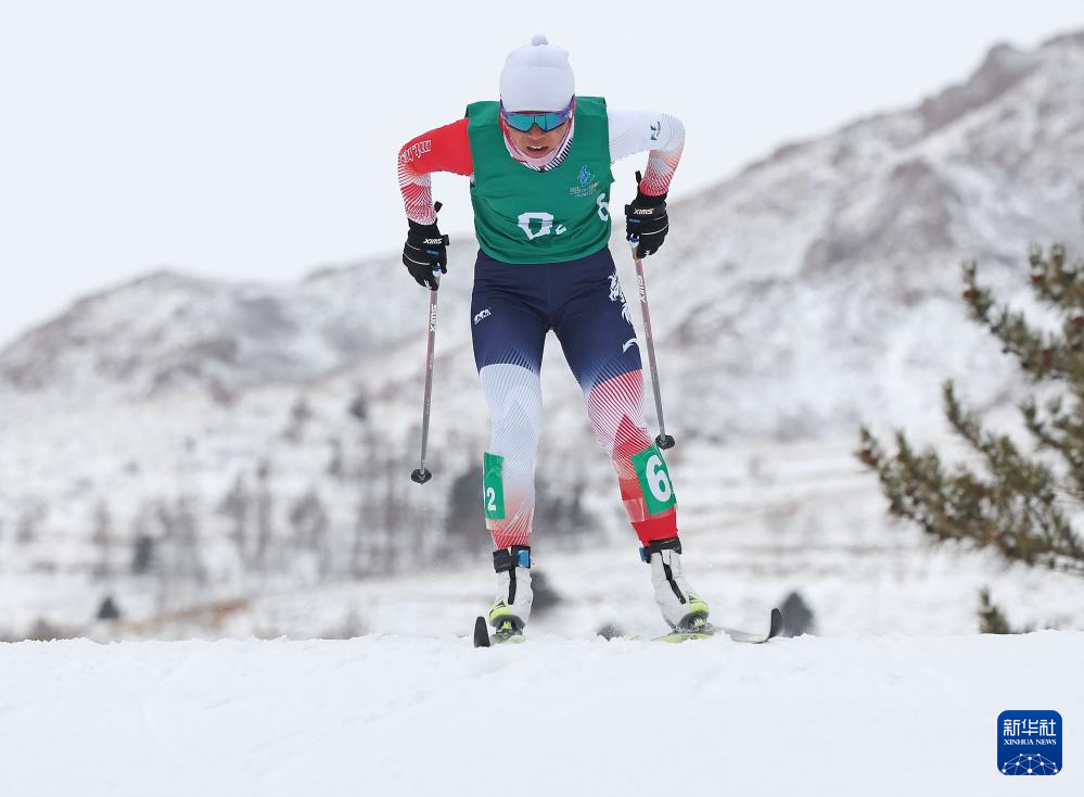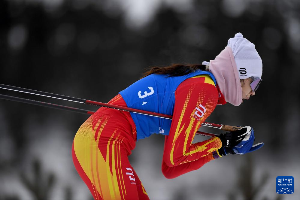 2月21日,新疆队选手迪那尔·塔力达吾别克(前)在比赛中。新华社记者 刘磊 摄