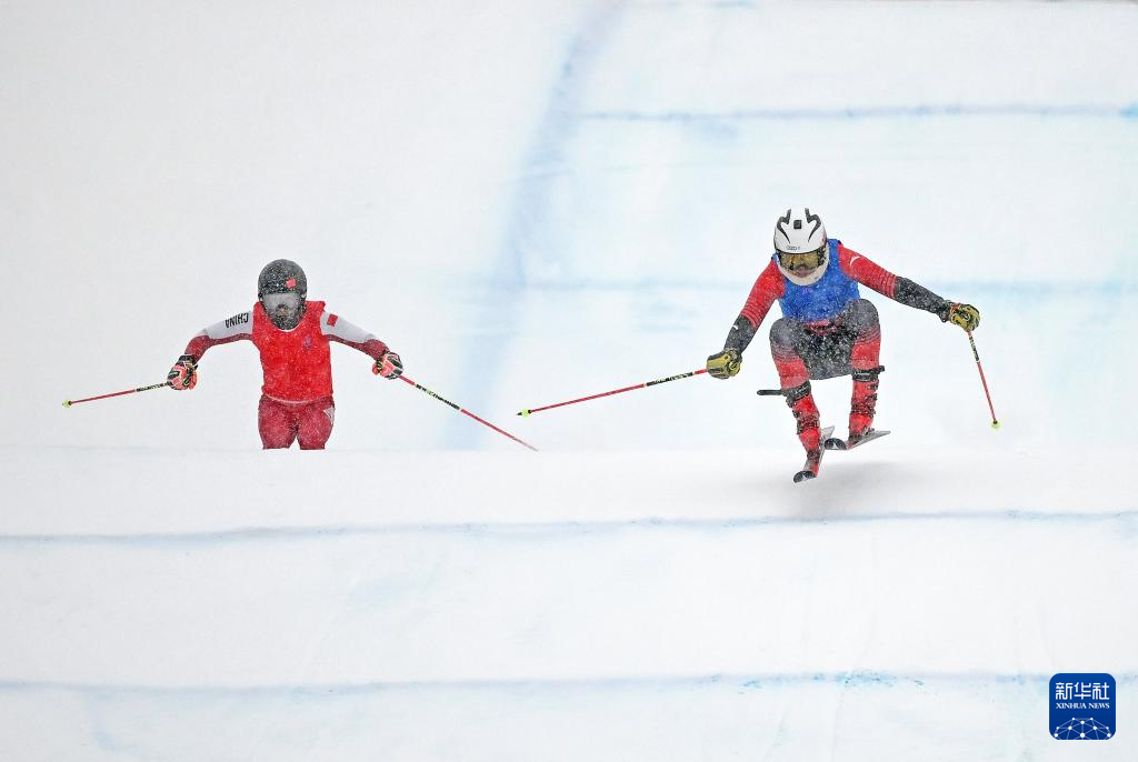 2月20日,辽宁队选手赵伟博(右)和黑龙江队选手陈柏旭在比赛中。新华社记者 赵子硕 摄