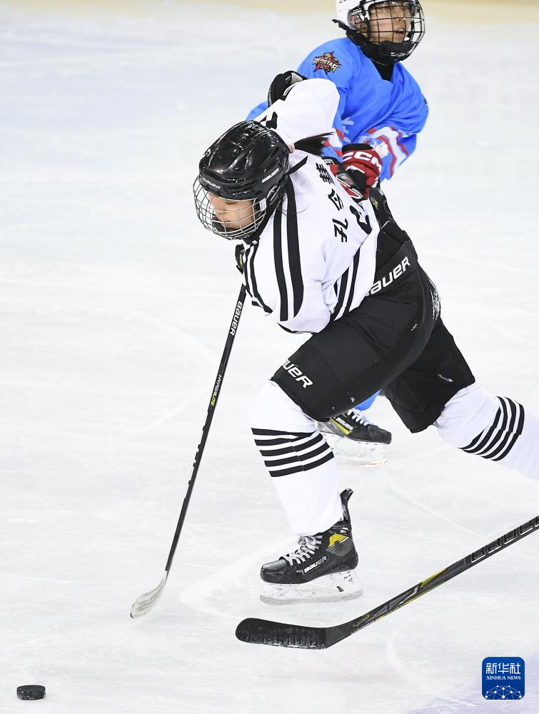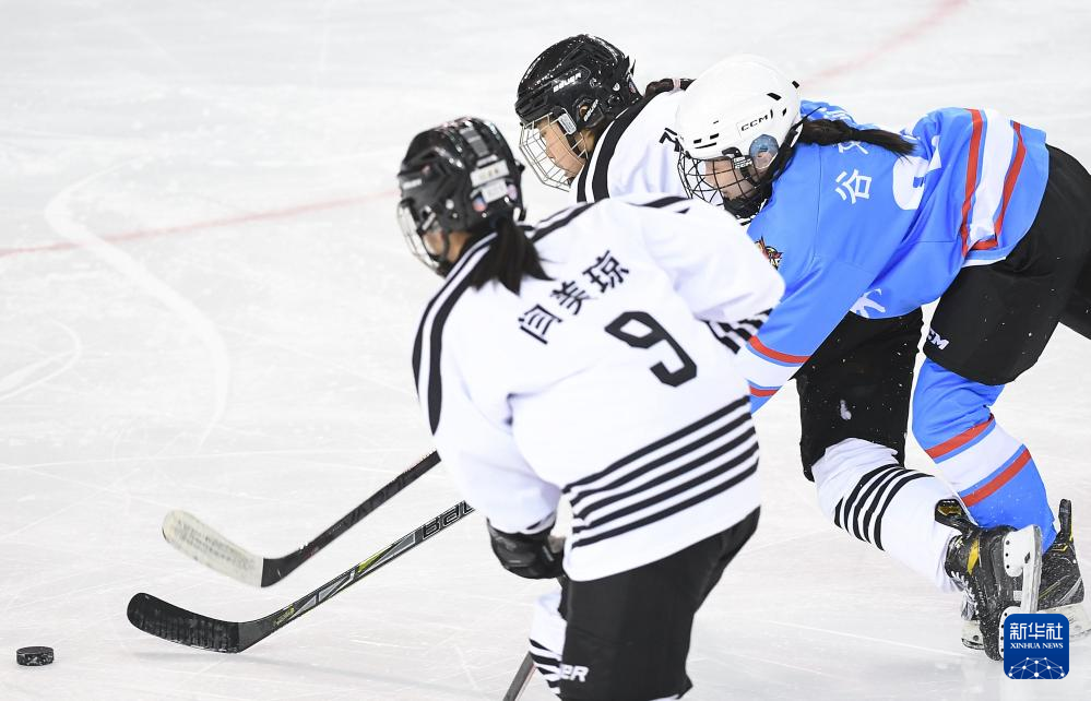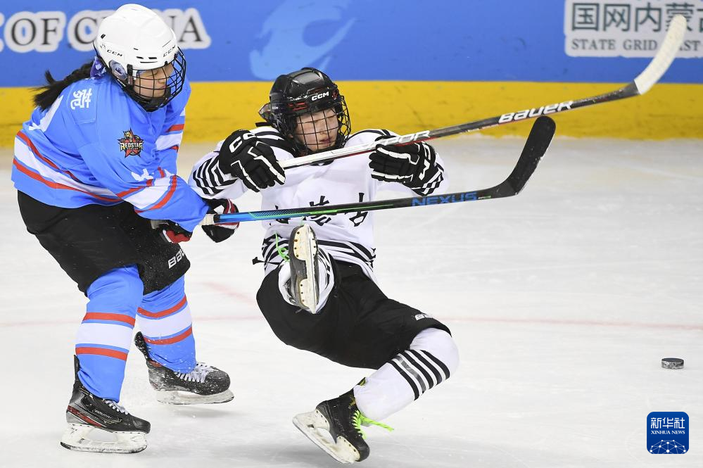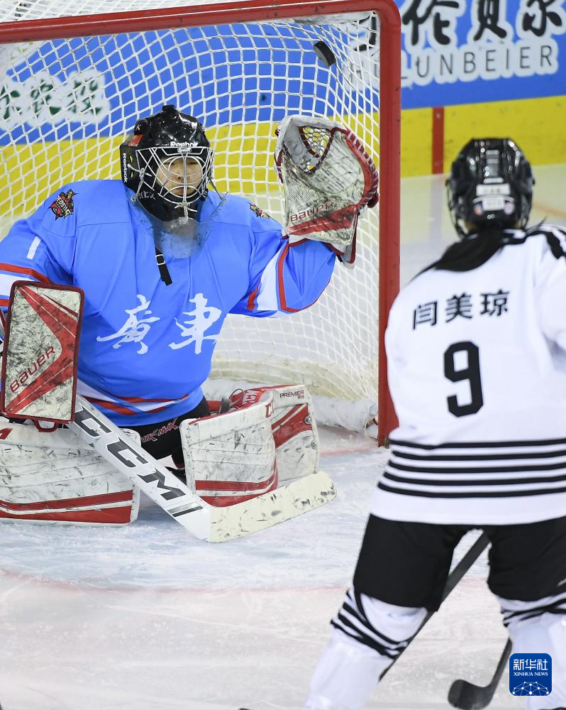当日,在内蒙古冰上运动训练中心冰球馆举行的第十四届全国冬季运动会冰球项目女子青年组小组循环赛B组比赛中,广东队5比4战胜内蒙古队。