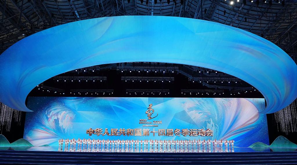 2月17日,第十四届全国冬季运动会开幕式在内蒙古呼伦贝尔市海拉尔区内蒙古冰上运动训练中心举行。新华社记者 李博 摄