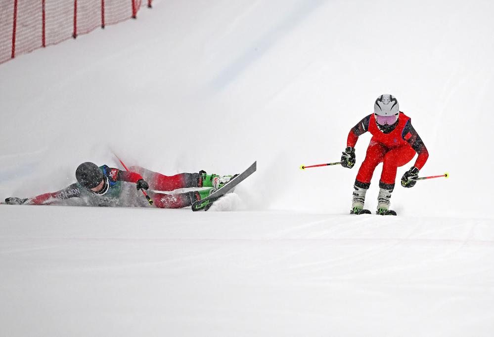 自由式滑雪障碍追逐既具备竞速类项目的高速度和刺激感,也有技巧类项目的跳跃、腾空等动作,在一个包含不同回转、跳台、波浪等地貌的赛道上展开,将难度和速度融为一体,堪称“肩并肩的高速较量”。