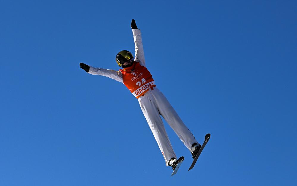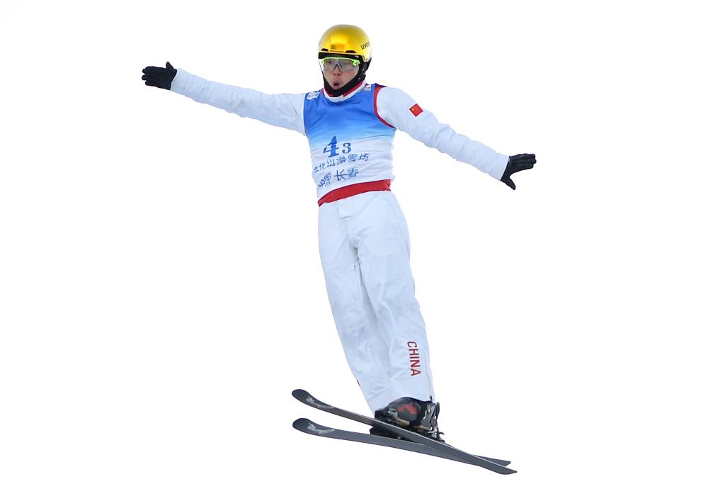 2023年12月17日,中国选手齐广璞在2023-2024赛季国际雪联自由式滑雪空中技巧世界杯(中国长春分站赛)中。新华社记者 许畅 摄
