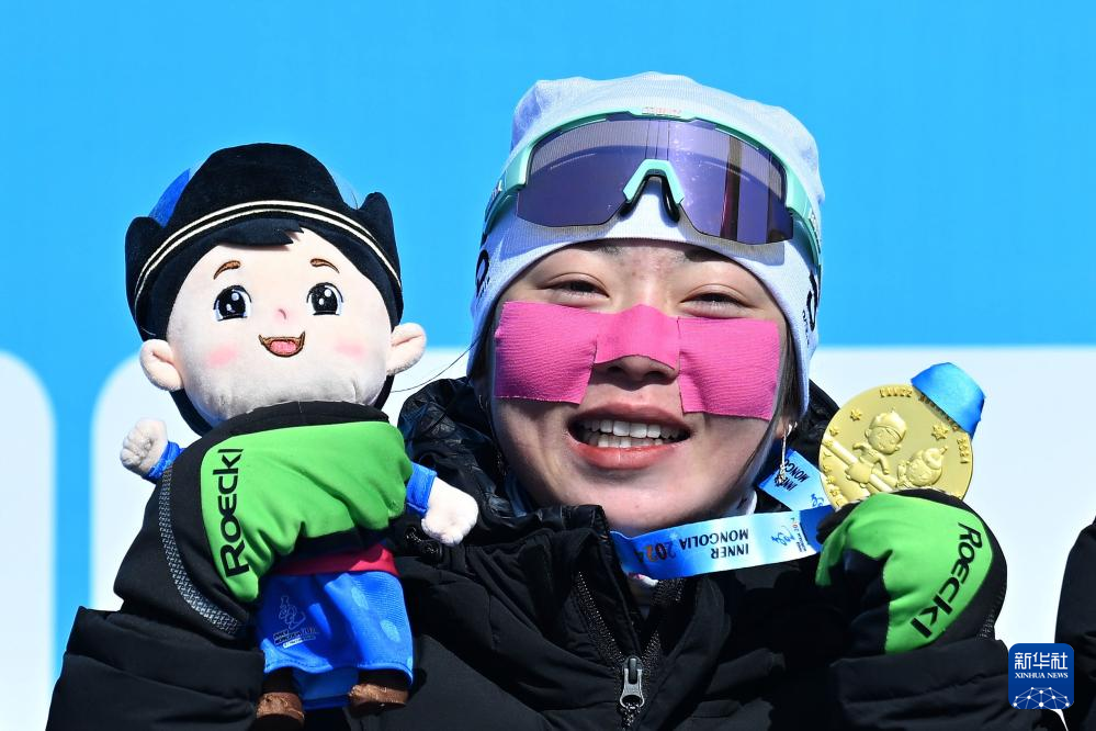 2月22日,辽宁队选手李昊容在颁奖仪式上。新华社记者 陈振海 摄