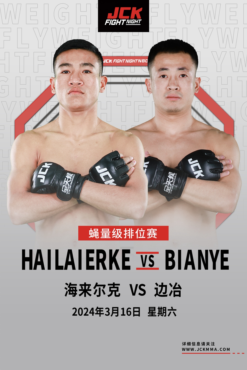 据悉,春节后首场JCK觉城之夜的比赛——JCK觉城之夜N80,将于2024年3月16日打响,头条主赛为JCK战觉城蝇量级官方排名第八的站立系选手海来尔克对战侦察兵出身目前官方排名第六的散打选手边冶;联合主赛部分,JCK战觉城轻量级官方排名第八的地面选手胡斯勒图迎战技术全面的鲁宗武。