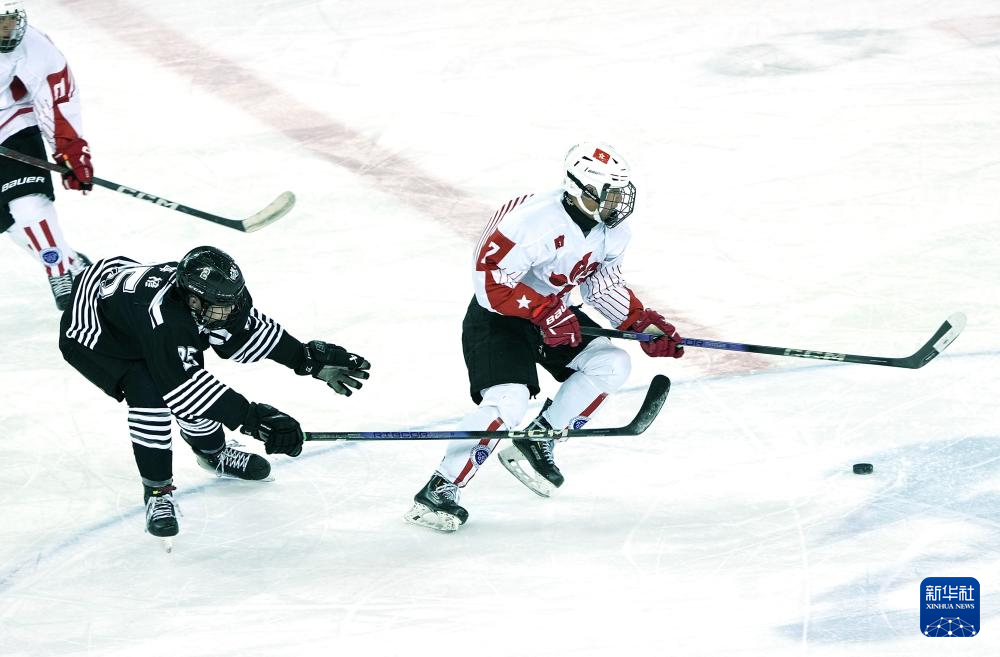 当日,在内蒙古冰上运动训练中心冰球馆举行的第十四届全国冬季运动会青年组男子冰球小组循环赛B组比赛中,内蒙古队3比1战胜香港队。