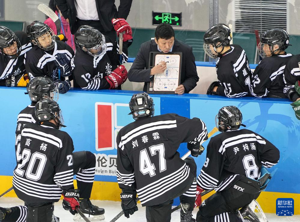 2月22日,内蒙古队教练员王大海(中)在比赛间隙指导队员。新华社记者 李欣 摄