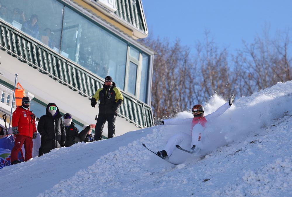 2月21日,辽宁队选手徐梦桃在比赛中落地失误。新华社记者 王楷焱 摄
