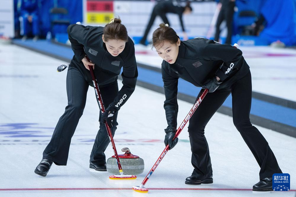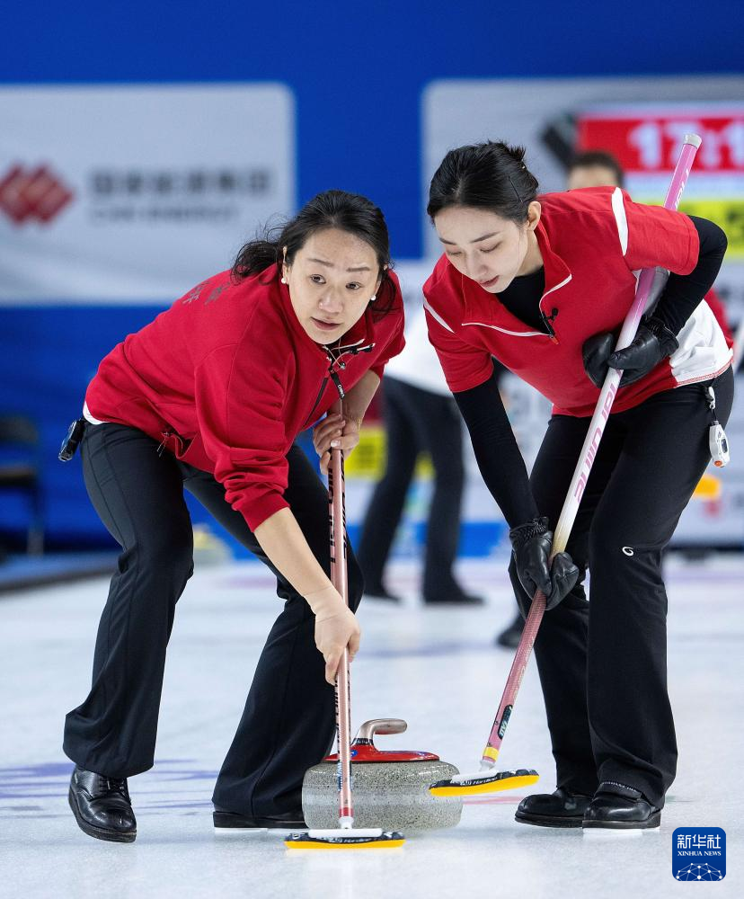 2月22日,四川队选手王冰玉(左)、周妍在比赛中。最终,四川队4比6不敌吉林队。新华社记者 陈欣波 摄