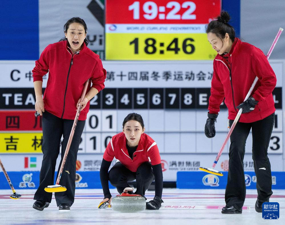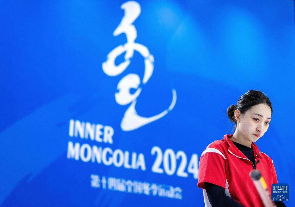 当日,第十四届全国冬季运动会冰壶项目公开组女子循环赛第二轮比赛在呼伦贝尔市内蒙古冰上运动训练中心举行。