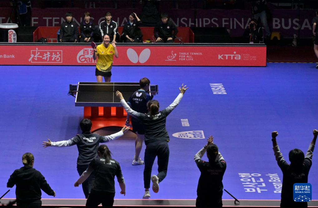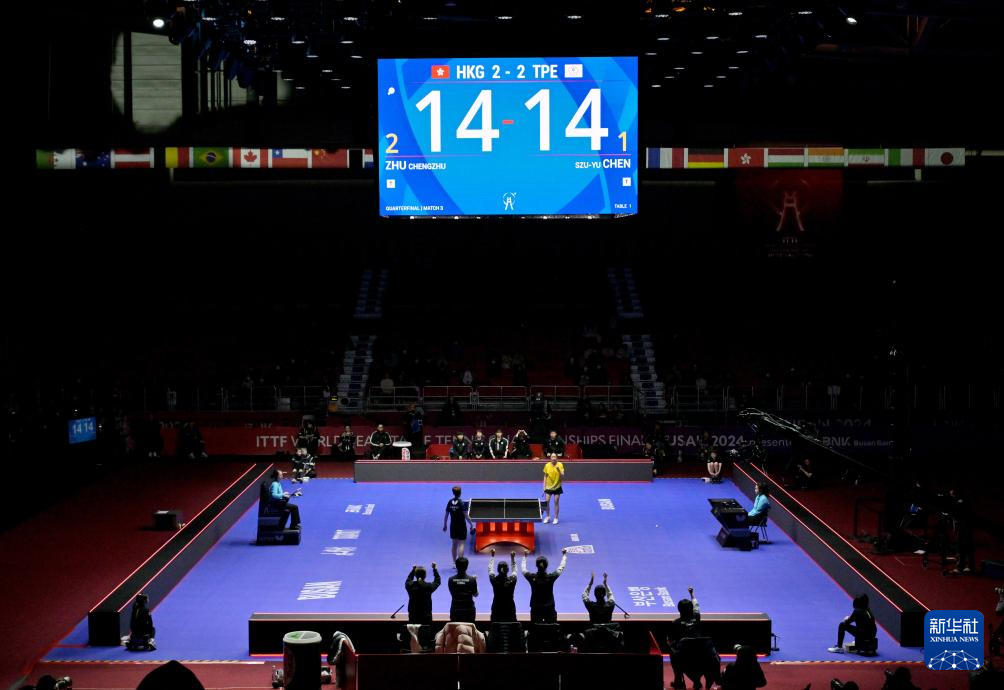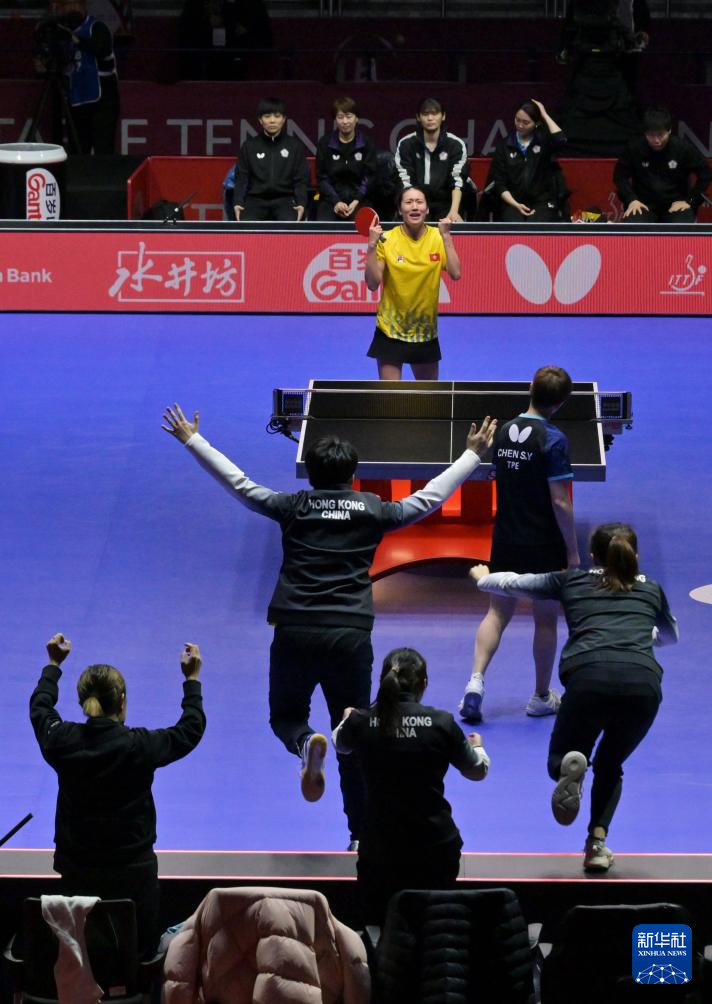 当日,在韩国釜山进行的2024年国际乒联釜山世界乒乓球团体锦标赛女子团体四分之一决赛中,中国香港队3比2战胜中国台北队,晋级四强。