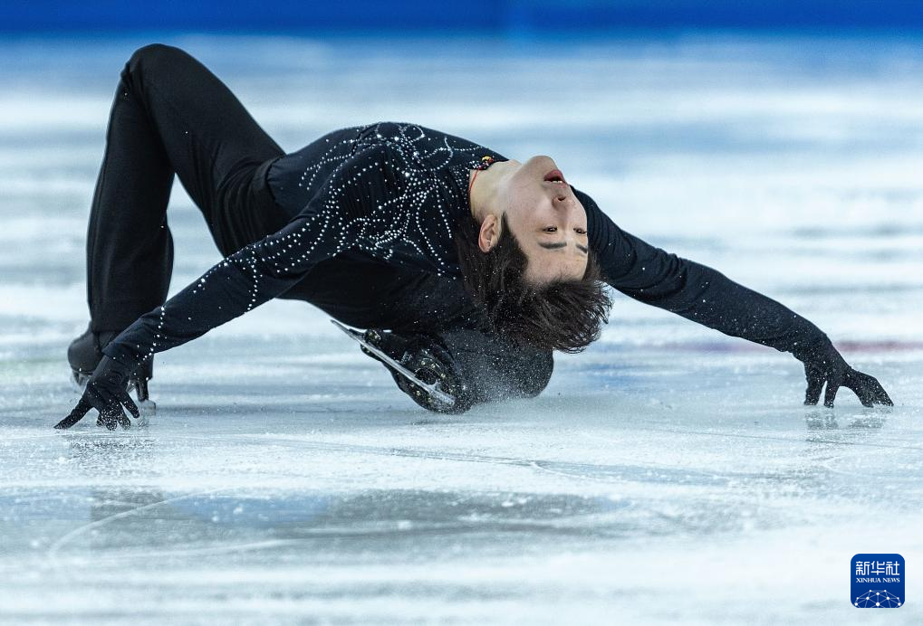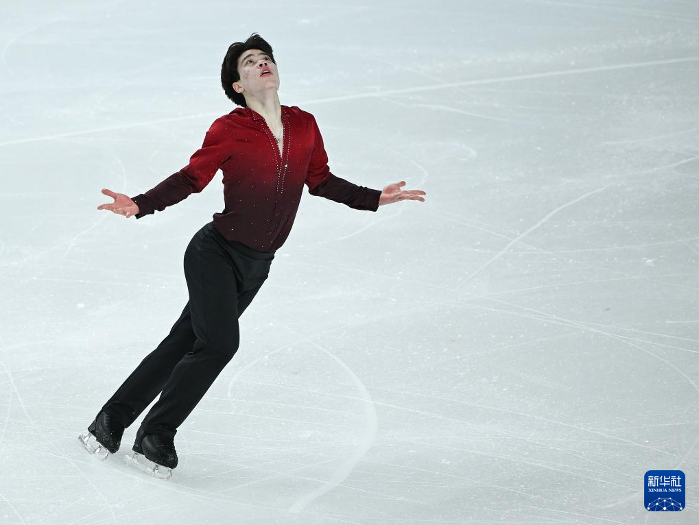 2月21日,北京队选手金博洋在比赛中,他以89.20分的成绩暂列第一名。新华社记者 胥冰洁 摄
