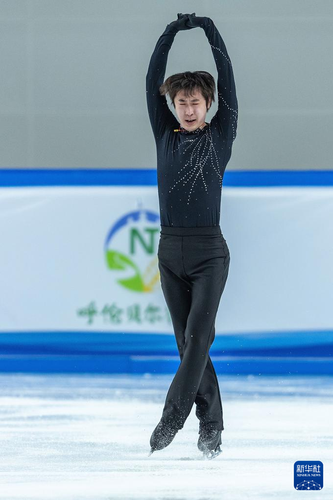 当日,第十四届全国冬季运动会花样滑冰(公开组)团体男子单人滑短节目比赛在内蒙古呼伦贝尔市海拉尔区内蒙古冰上运动训练中心短道速滑馆举行。