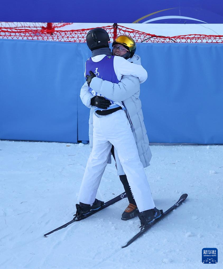 2月21日,冠军河南队选手陈硕(左)在比赛后和亚军吉林队选手李天马拥抱庆祝。新华社记者 王楷焱 摄