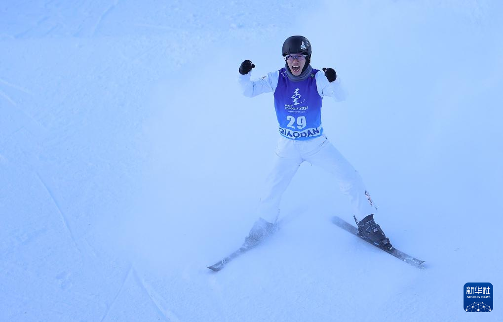 当日,第十四届全国冬季运动会自由式滑雪空中技巧公开组男子个人决赛在内蒙古呼伦贝尔市扎兰屯金龙山滑雪场举行。