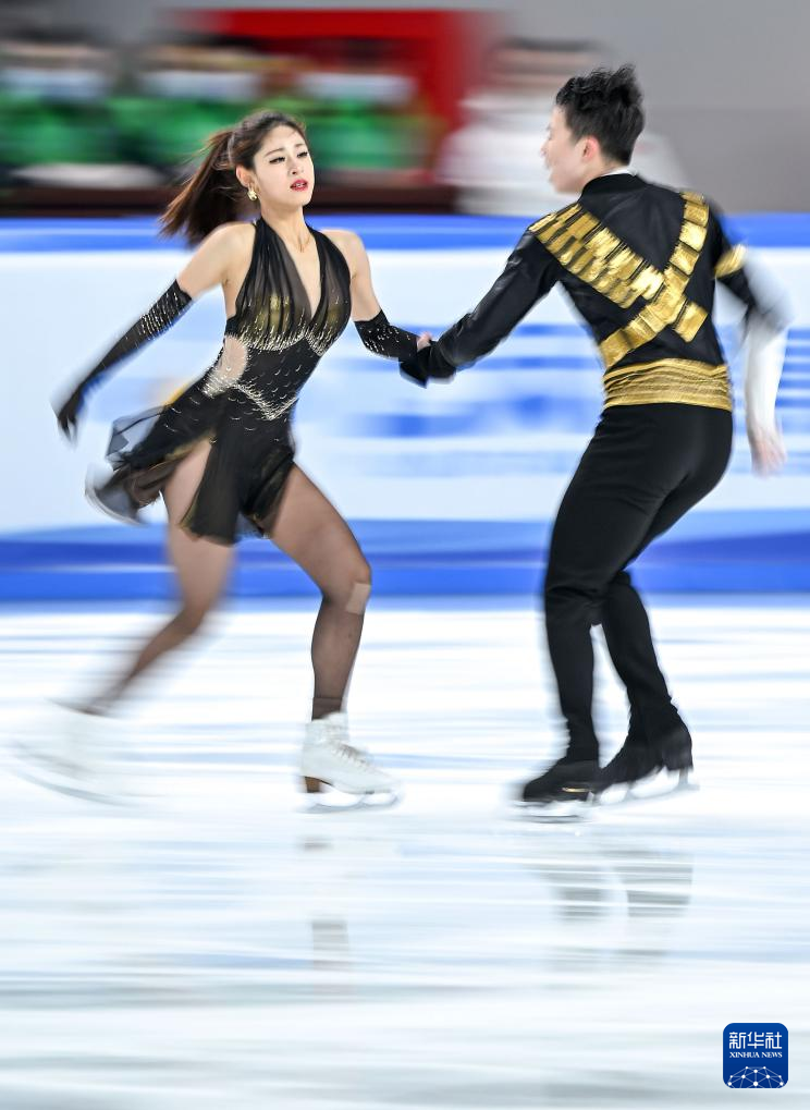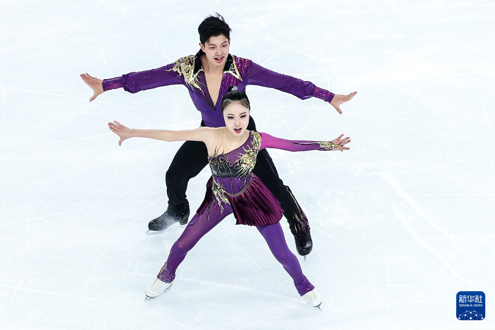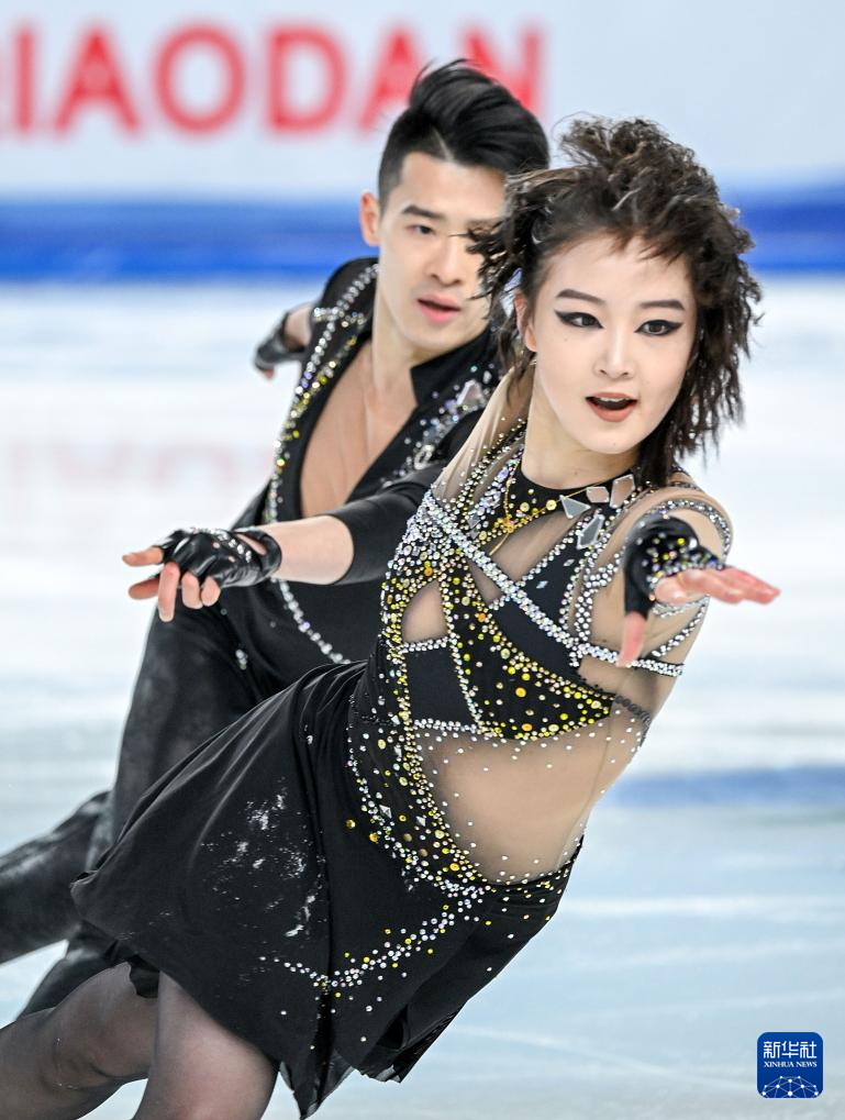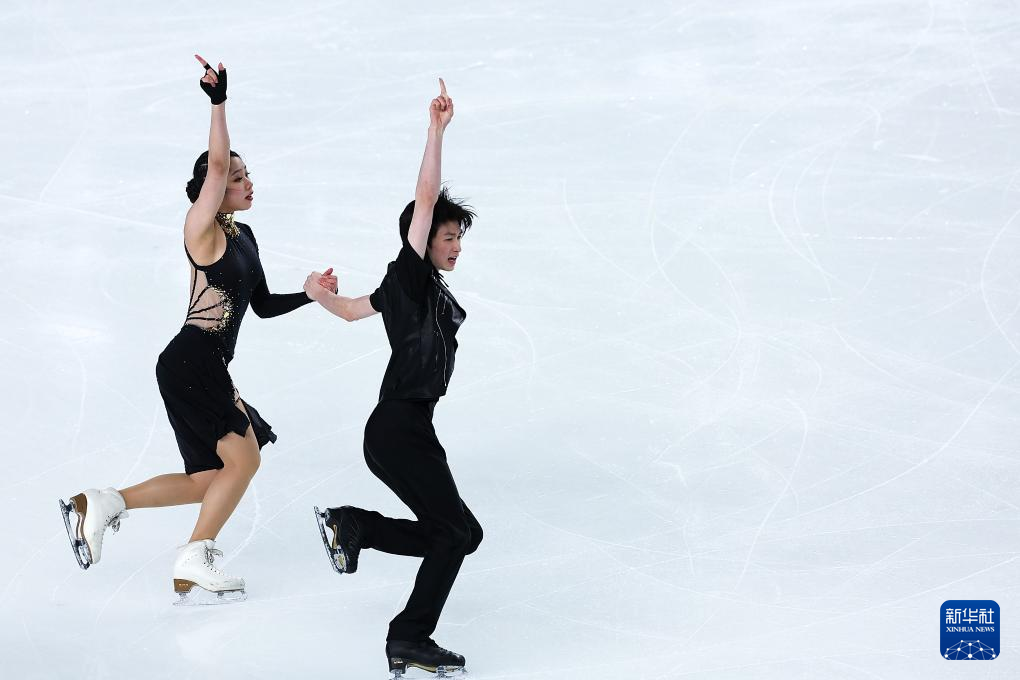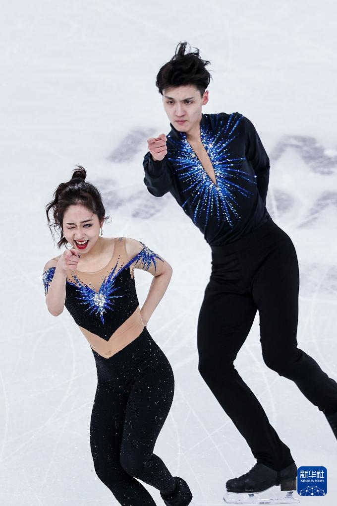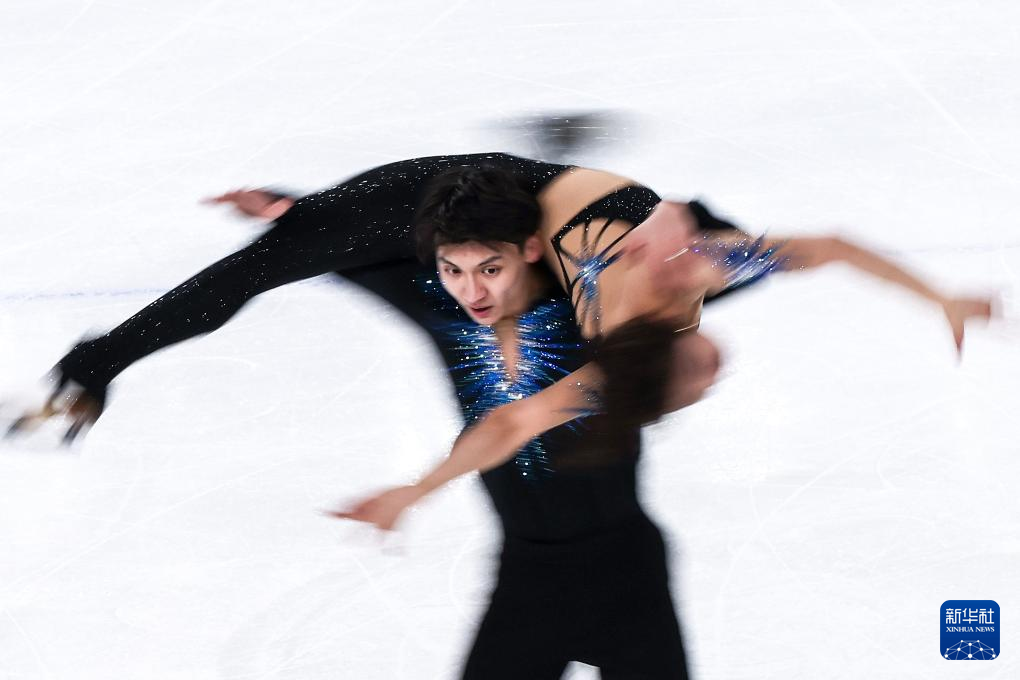 2月21日,广东队组合肖紫兮(右)/何凌昊在比赛中,他们以61.94分的成绩位列该项目第四。新华社记者 李博 摄