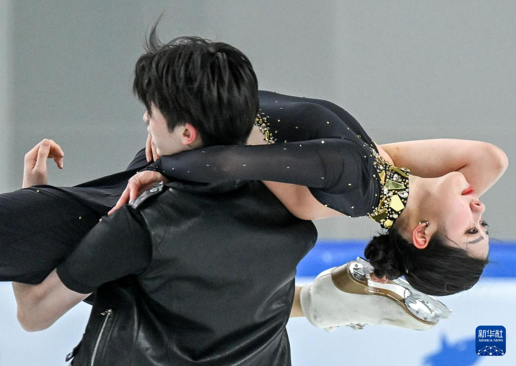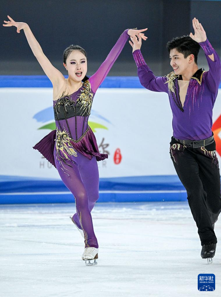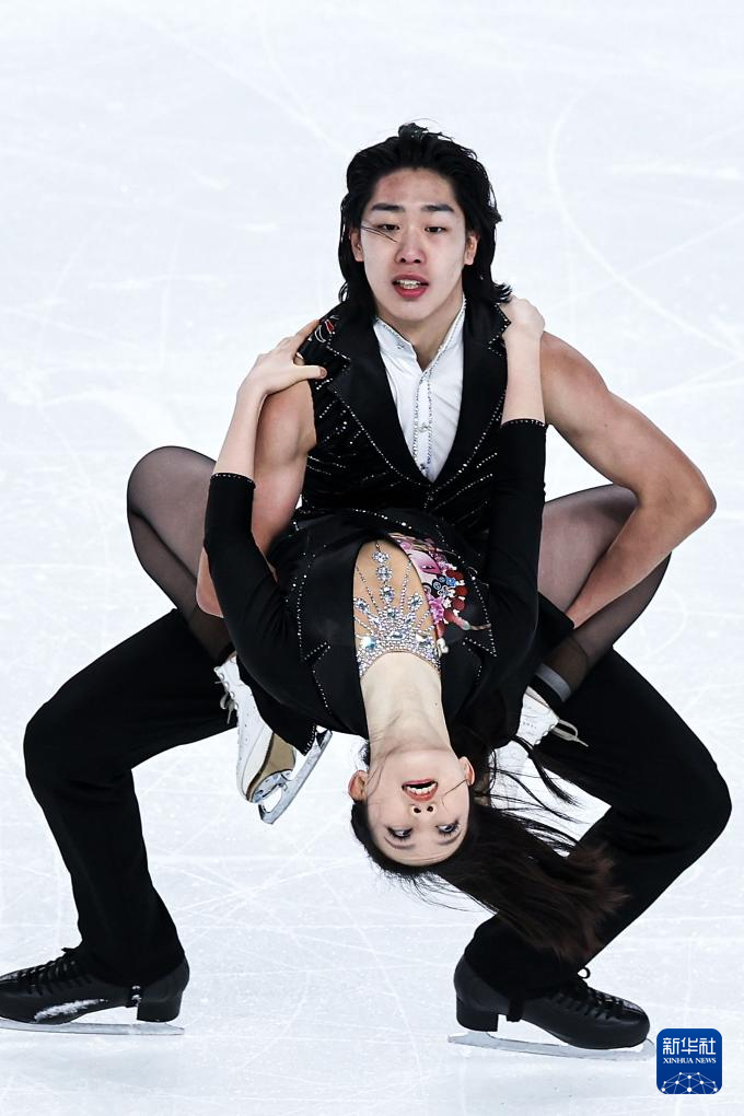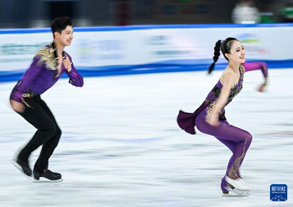 2月21日,广东队组合肖紫兮(左)/何凌昊在比赛中,他们以61.94分的成绩位列该项目第四。新华社记者 连振 摄