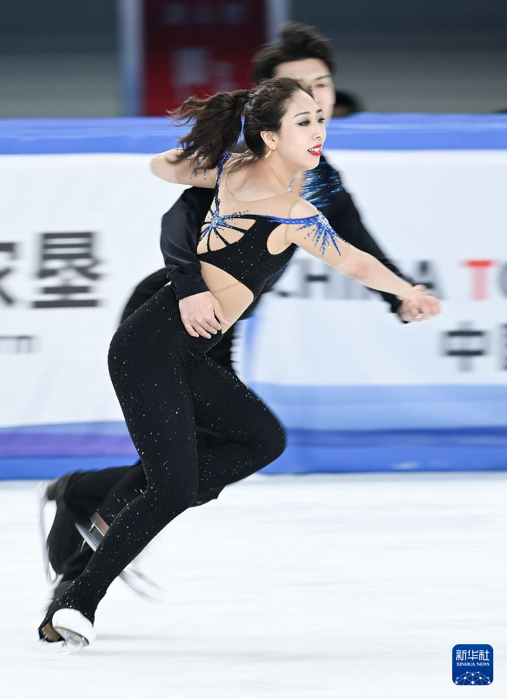 2月21日,吉林队组合于昕沂(前)/刘天艺在比赛中,他们以51.26分的成绩位列该项目第六。新华社记者 李博 摄