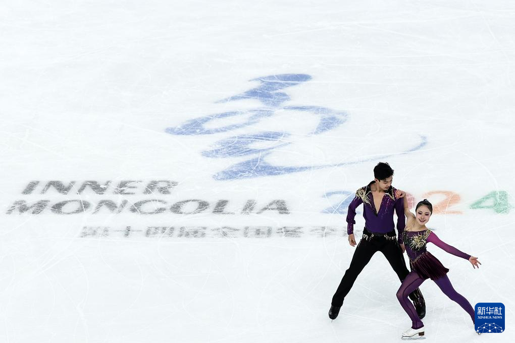 当日,第十四届全国冬季运动会花样滑冰公开组团体赛冰舞韵律舞项目比赛在内蒙古呼伦贝尔市海拉尔区内蒙古冰上运动训练中心短道速滑馆举行。