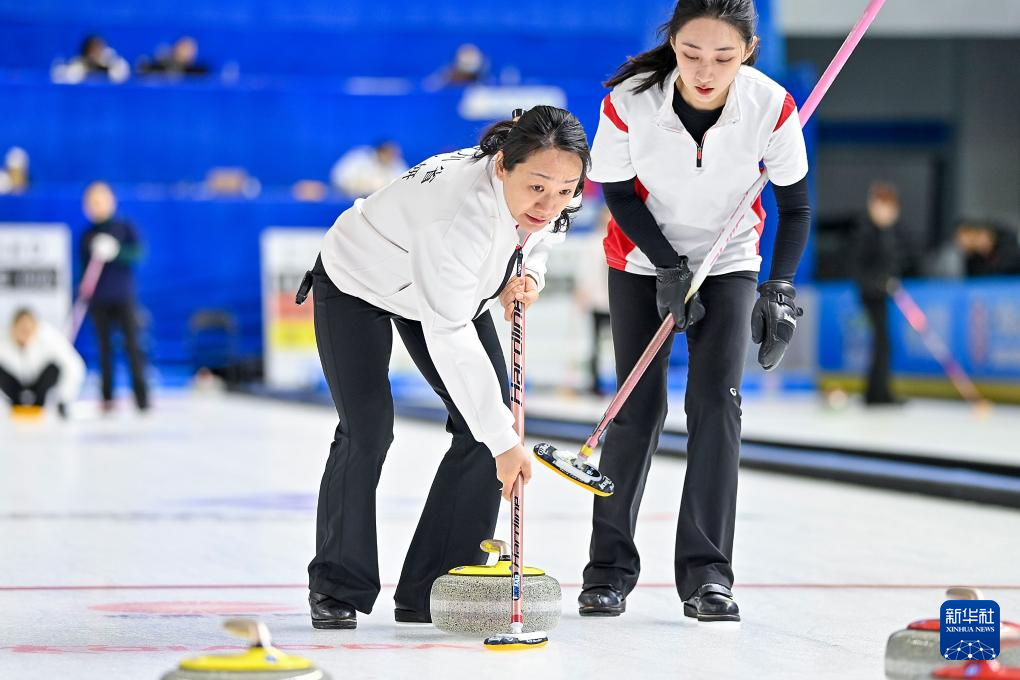2月22日,内蒙古队选手田琳塬(右)、贺丹在比赛中。最终,内蒙古队6比3战胜云南队。新华社记者 杨晨光 摄
