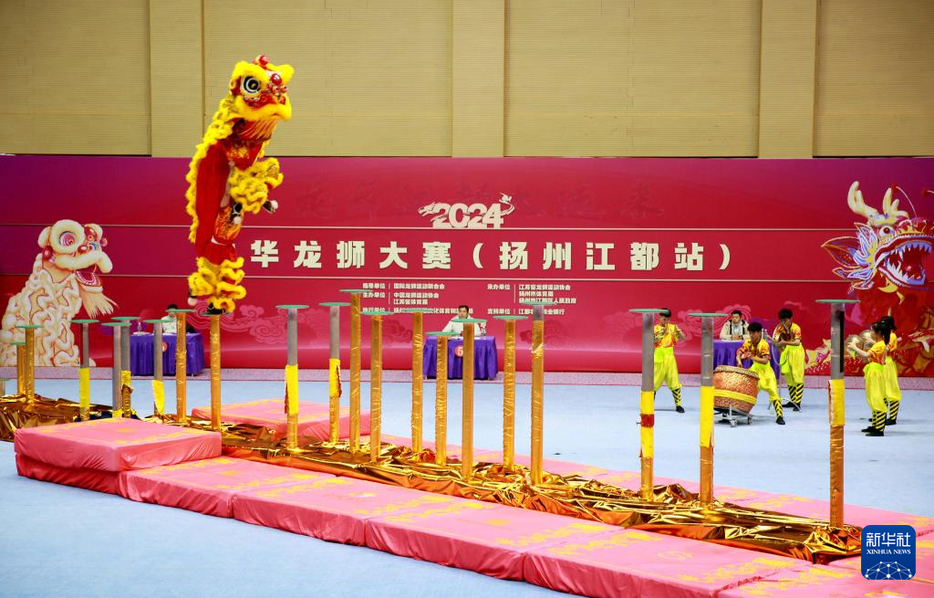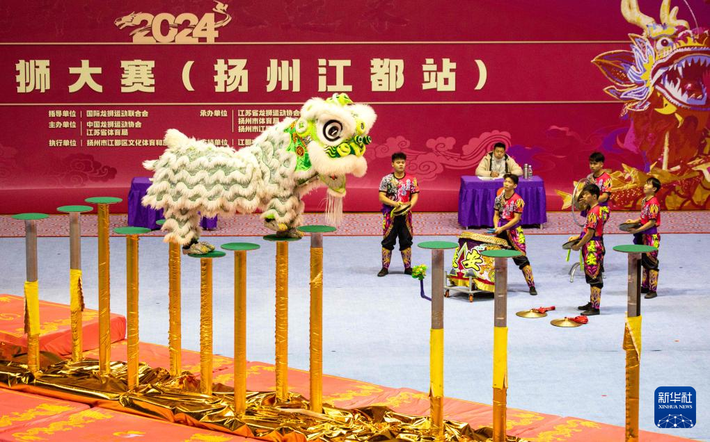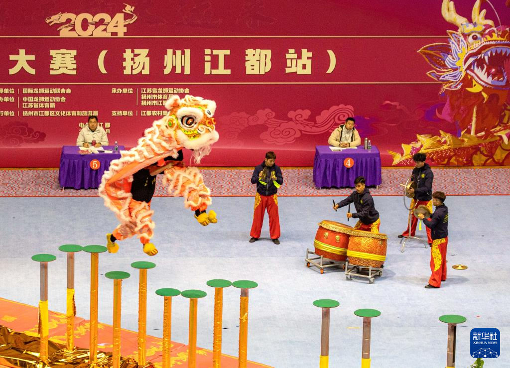 当日,2024中华龙狮大赛(扬州江都站)在江苏省扬州市江都区体育馆开赛。
