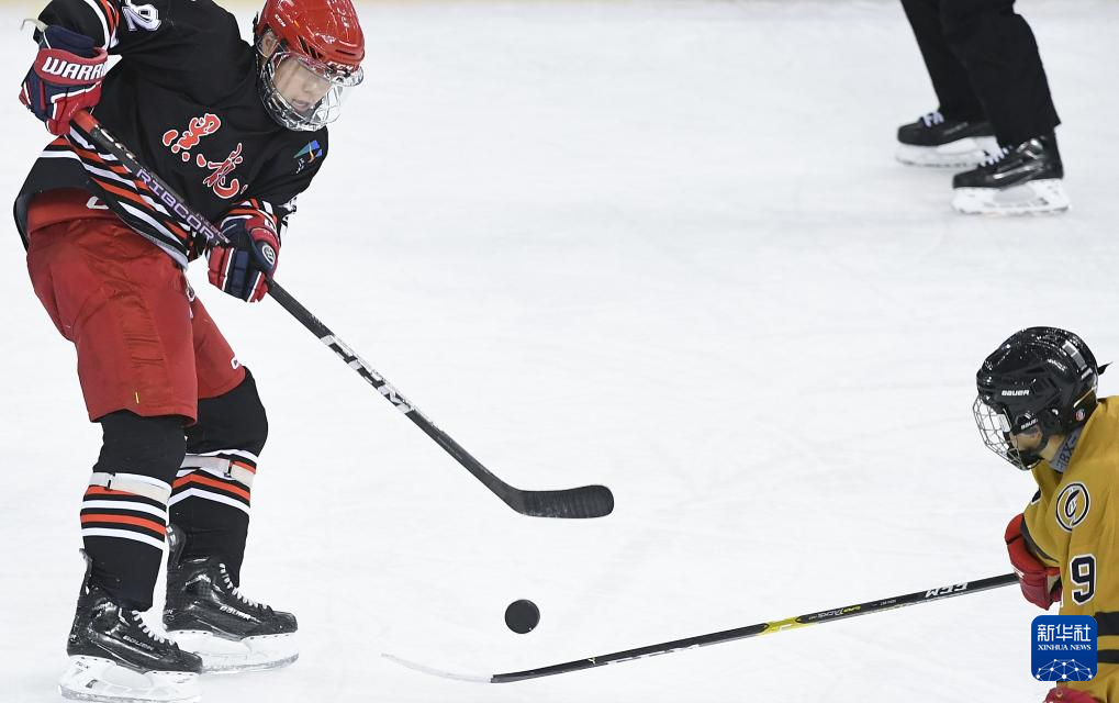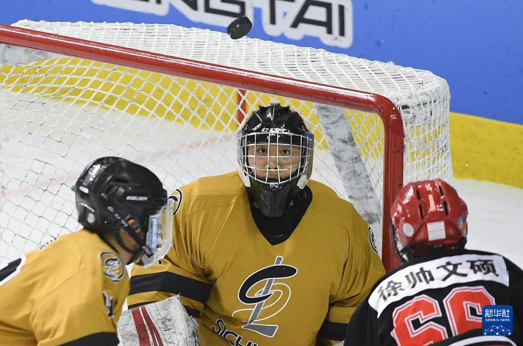 当日,在内蒙古冰上运动训练中心冰球馆举行的第十四届全国冬季运动会冰球项目男子青年组小组循环赛A组比赛中,黑龙江队7比2战胜四川队。