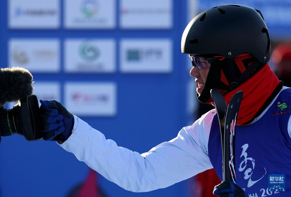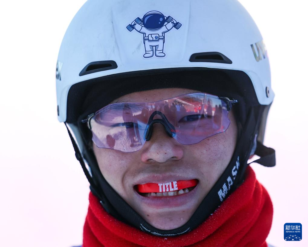 2月22日,河北队选手于圣哲在完成比赛后。最终,他获得亚军。新华社记者 牟宇 摄