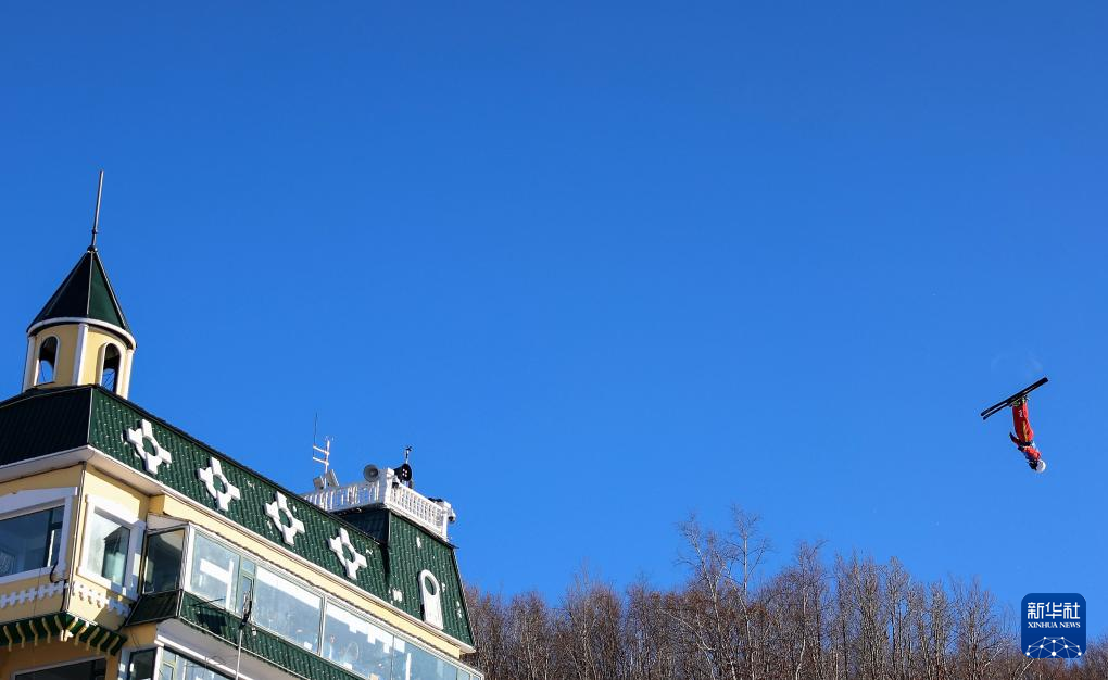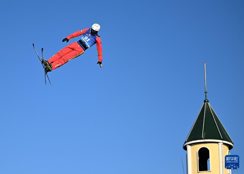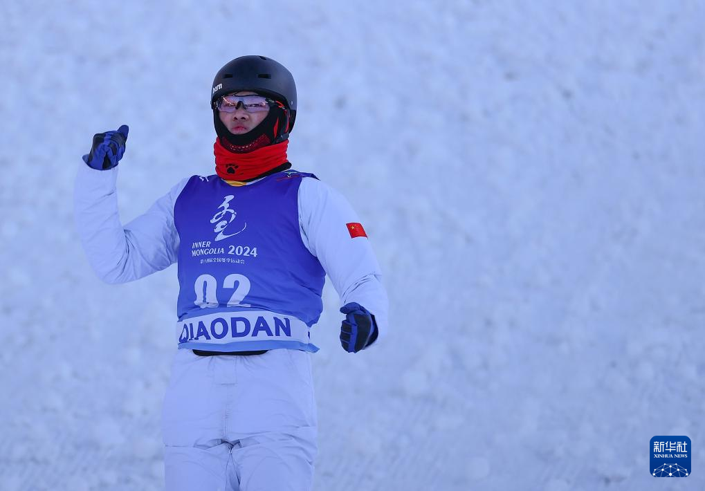 当日,第十四届全国冬季运动会自由式滑雪青年组男子空中技巧个人比赛在内蒙古呼伦贝尔市扎兰屯金龙山滑雪场举行。