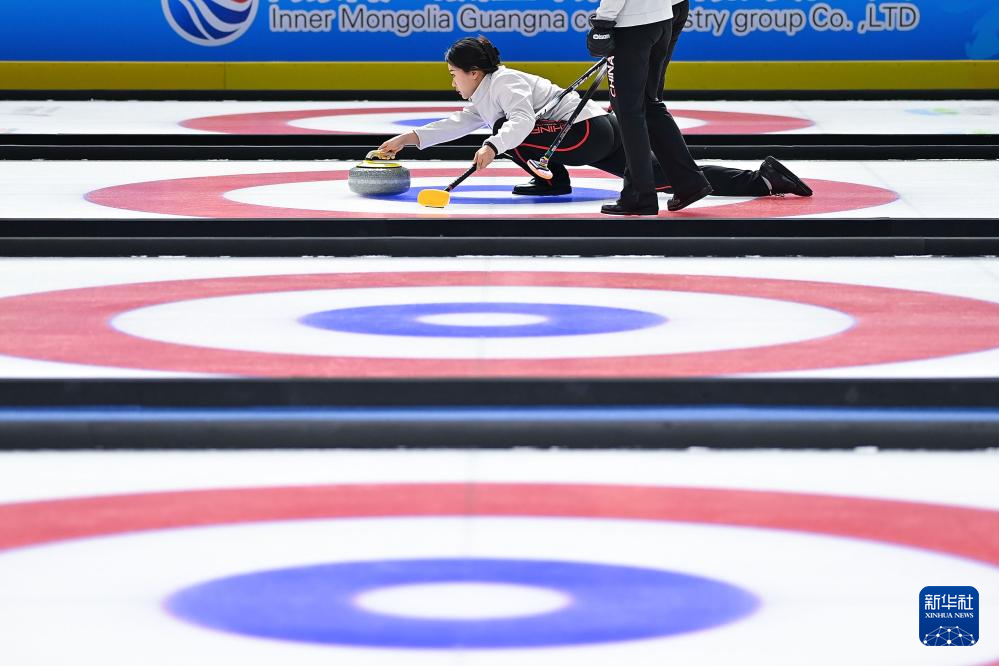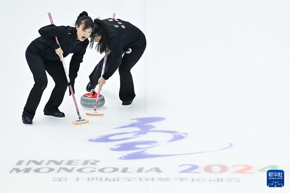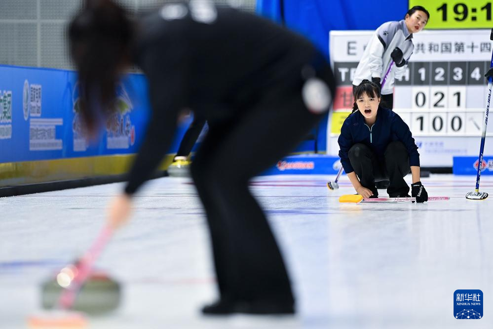 当日,第十四届全国冬季运动会冰壶项目公开组女子循环赛第四轮比赛在呼伦贝尔市内蒙古冰上运动训练中心举行。