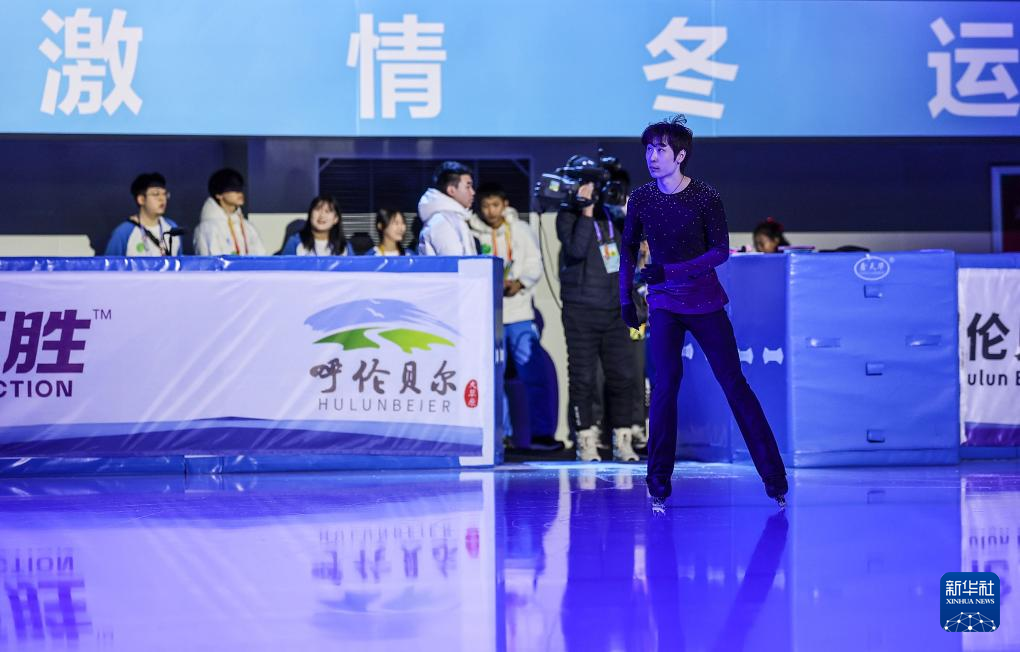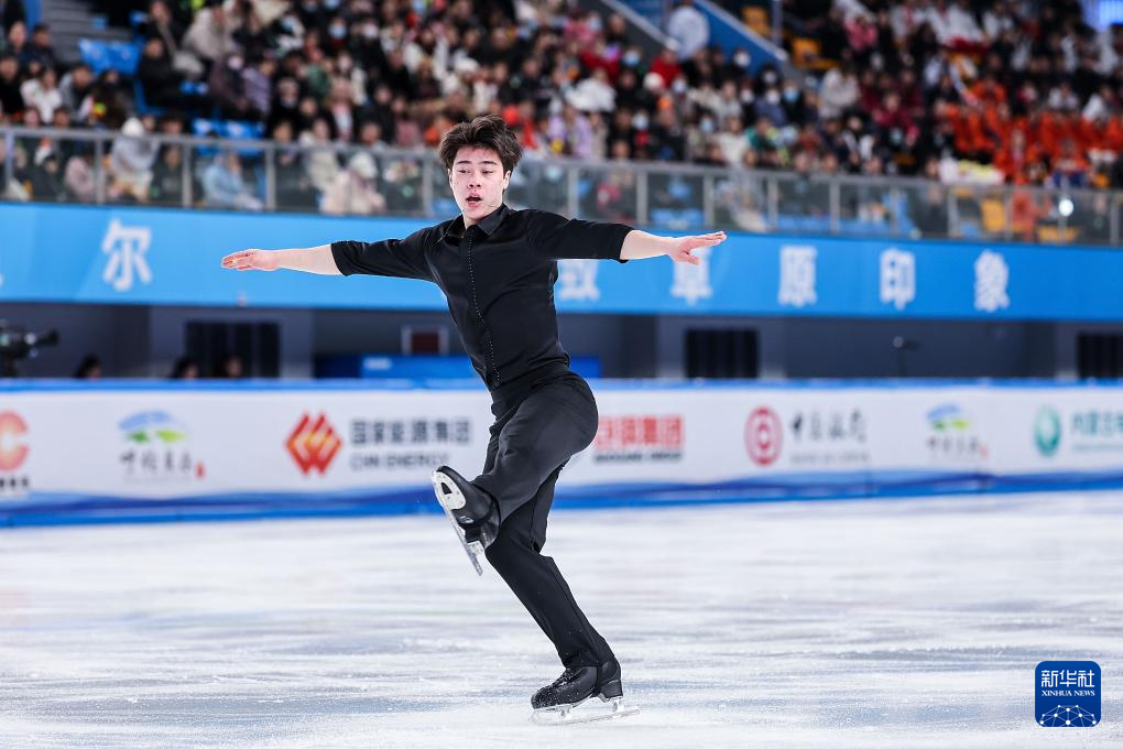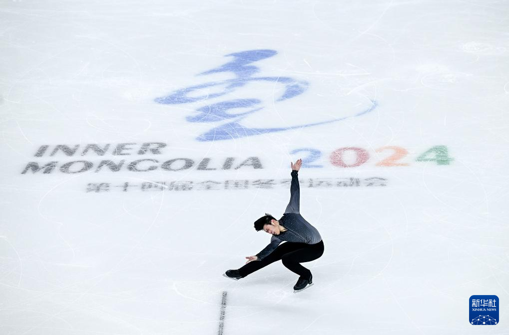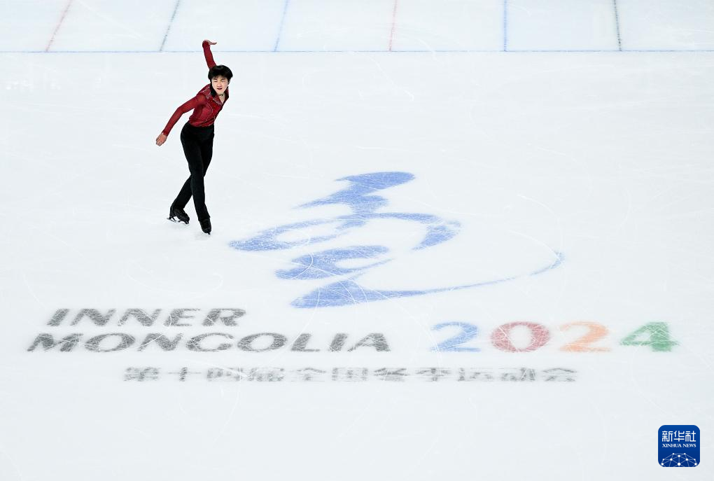 当日,第十四届全国冬季运动会花样滑冰公开组团体赛男子单人滑自由滑项目比赛在内蒙古呼伦贝尔市海拉尔区内蒙古冰上运动训练中心短道速滑馆举行。