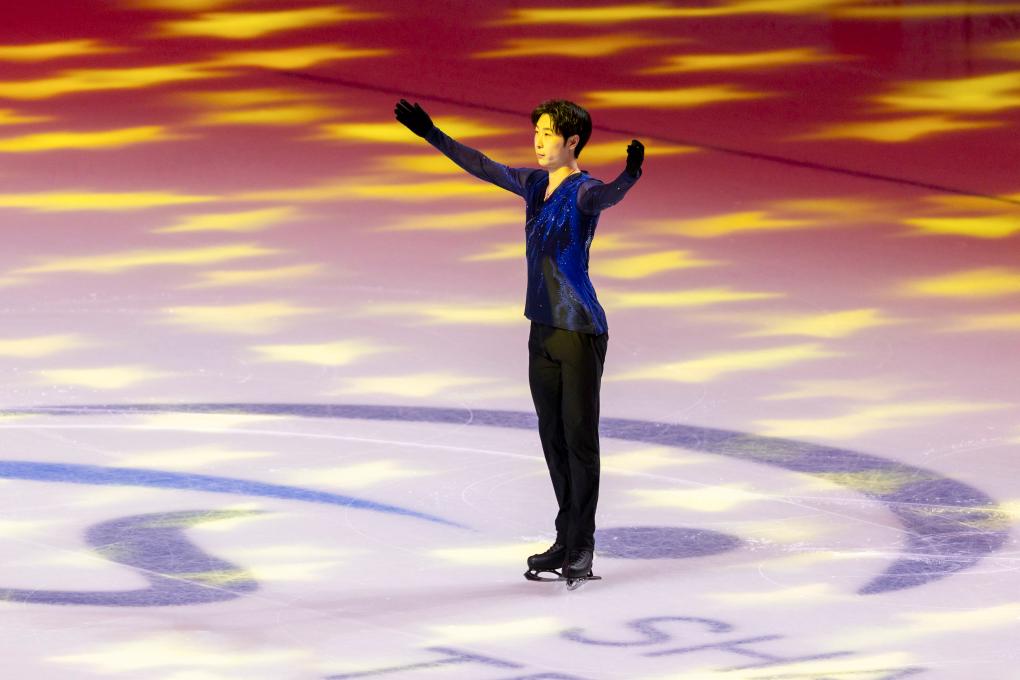 2022年2月10日,金博洋在北京2022年冬奥会花样滑冰男子单人滑自由滑比赛后。新华社记者 鞠焕宗 摄
