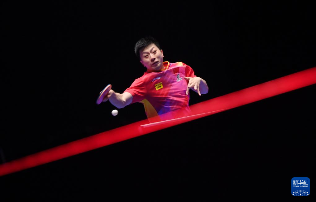 2月22日,中国队选手马龙在第三盘比赛中回球。他3比1战胜日本队选手篠塚大登。新华社记者 姚琪琳 摄