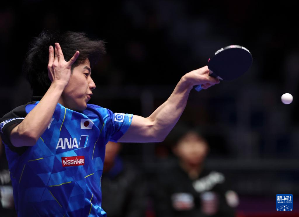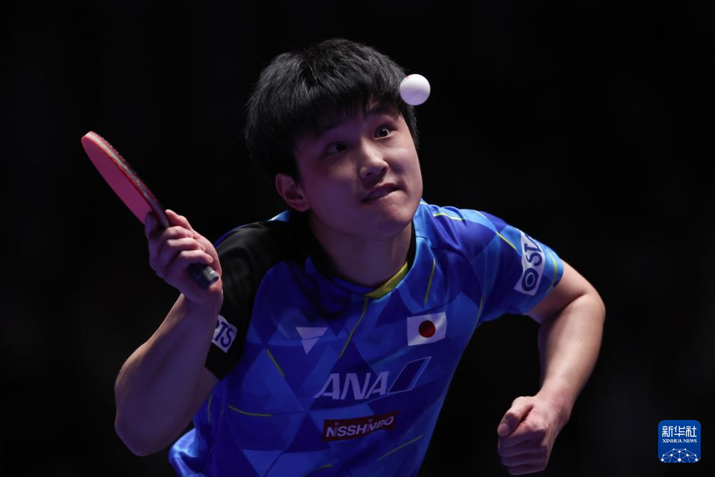 2月22日,日本队选手松岛辉空在第一盘比赛中回球。他1比3不敌中国队选手樊振东。新华社记者 姚琪琳 摄