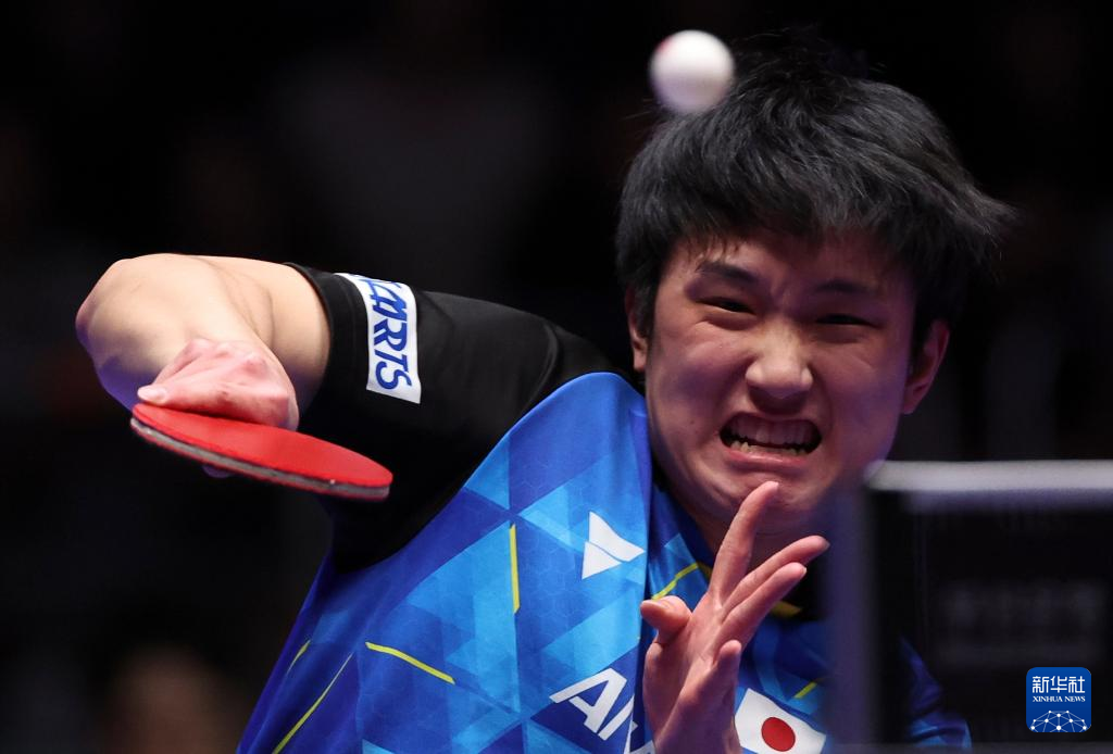 2月22日,日本队选手张本智和在第二盘比赛中回球。他1比3不敌中国队选手王楚钦。新华社记者 姚琪琳 摄