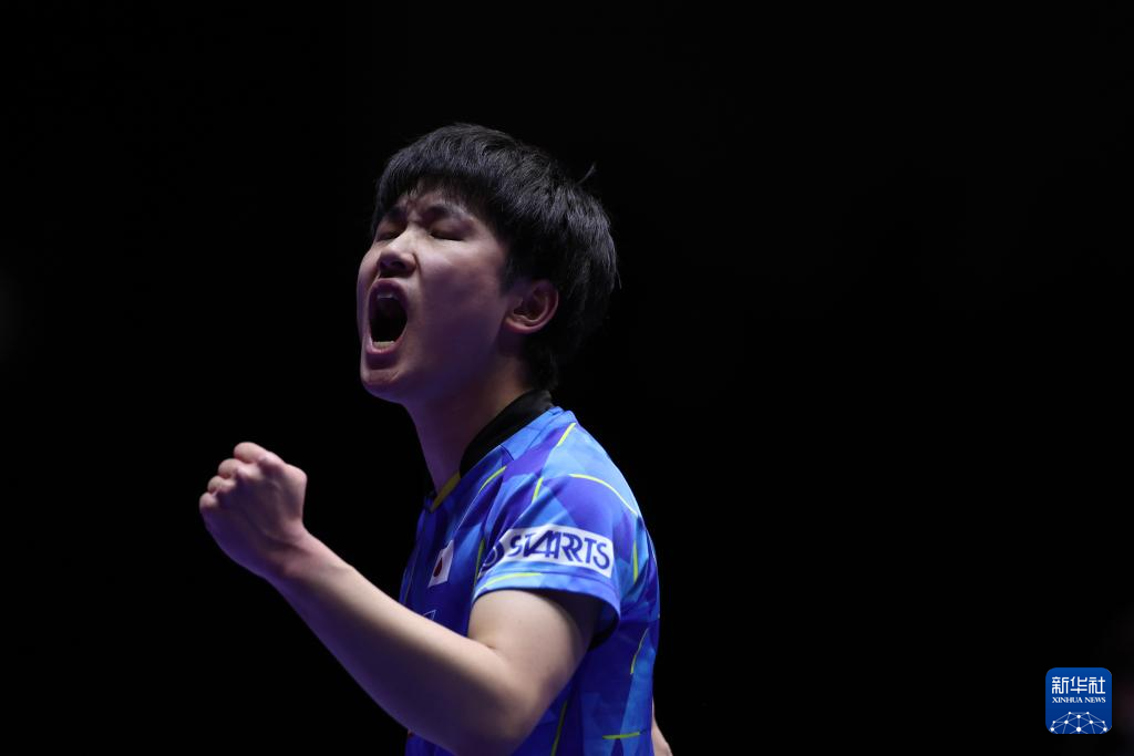 2月22日,日本队选手张本智和在第二盘比赛中庆祝得分。他1比3不敌中国队选手王楚钦。新华社记者 张涛 摄