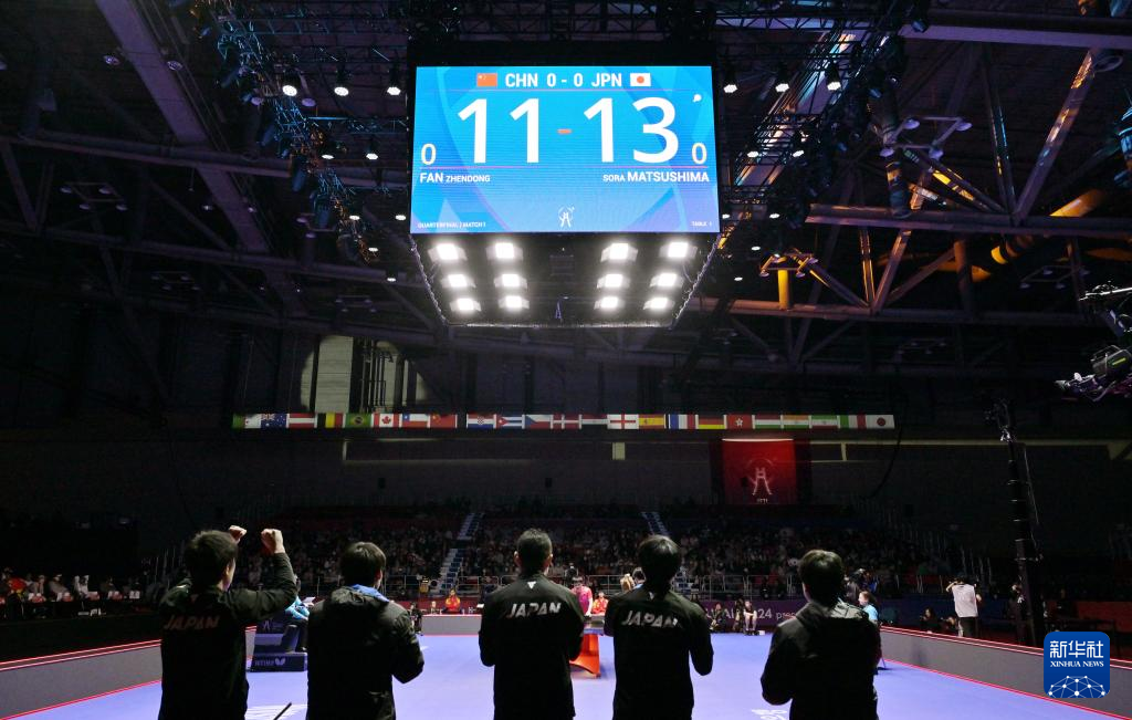 当日,在韩国釜山进行的2024年国际乒联釜山世界乒乓球团体锦标赛男子团体四分之一决赛中,中国队3比0战胜日本队,晋级四强。