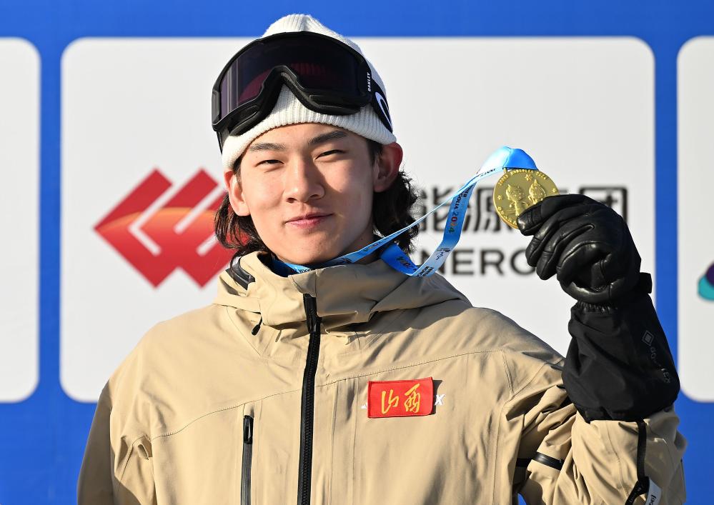 2月23日,冠军山西队选手苏翊鸣在颁奖仪式上。新华社记者 贝赫 摄