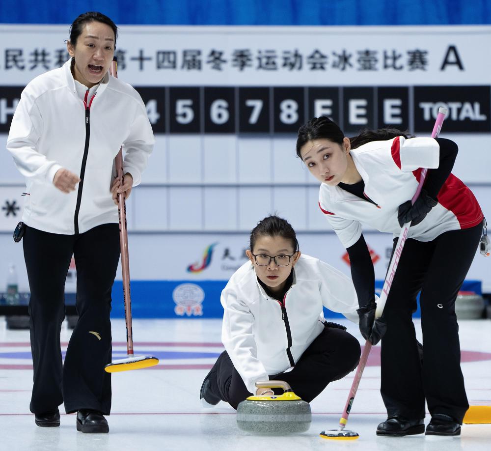 新华社呼和浩特2月23日电(记者戴锦镕、刘艺淳)23日,第十四届全国冬季运动会冰壶公开组男子和女子循环赛均进行了第四、第五轮比赛,王冰玉、周妍、岳清爽所在的四川女子冰壶队收获首胜。