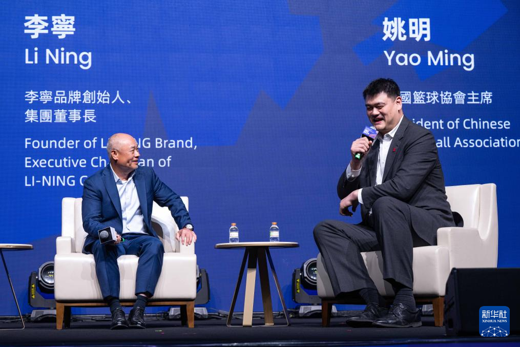 2月23日,姚明(右)与李宁在大湾区国际体育商业峰会上。新华社记者 张金加 摄