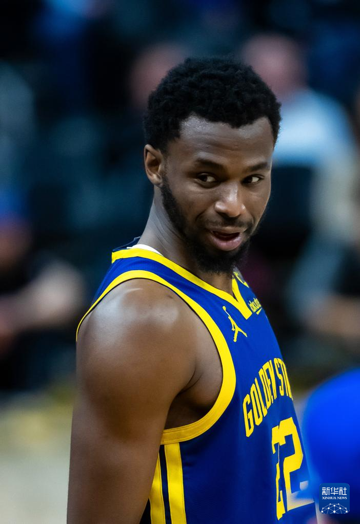 2月23日,勇士队球员库里安德鲁·维金斯在比赛中。新华社发(董旭东摄)