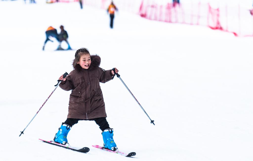 2019年1月16日,小朋友在六盘水市钟山区梅花山国际滑雪场滑雪。新华社记者 陶亮 摄