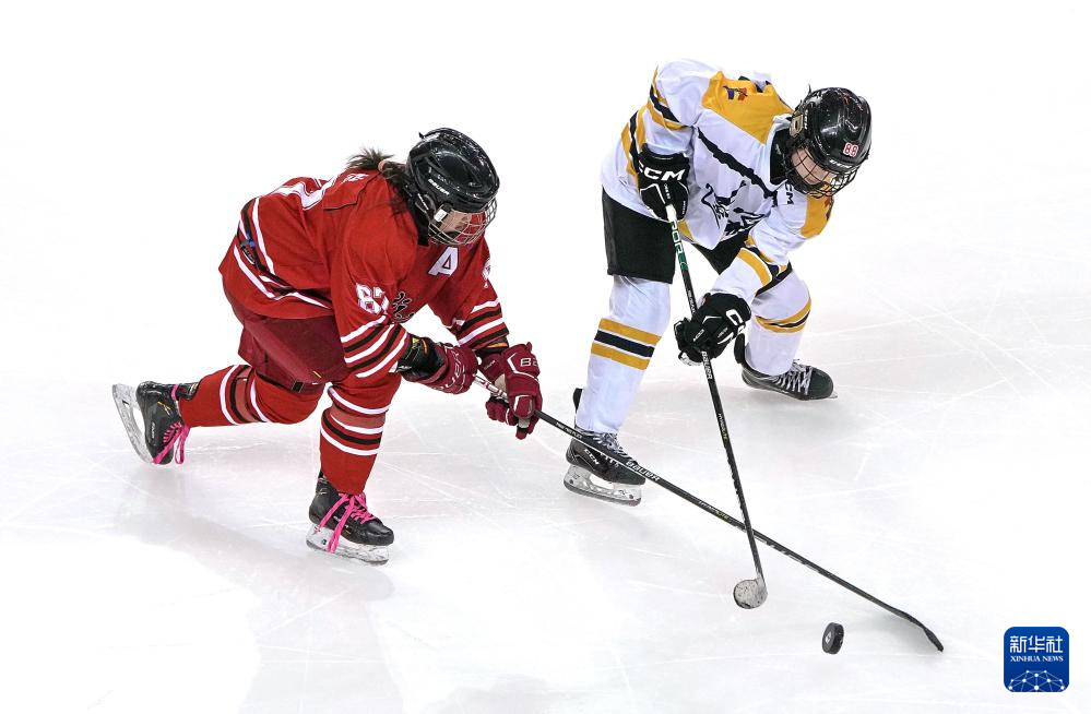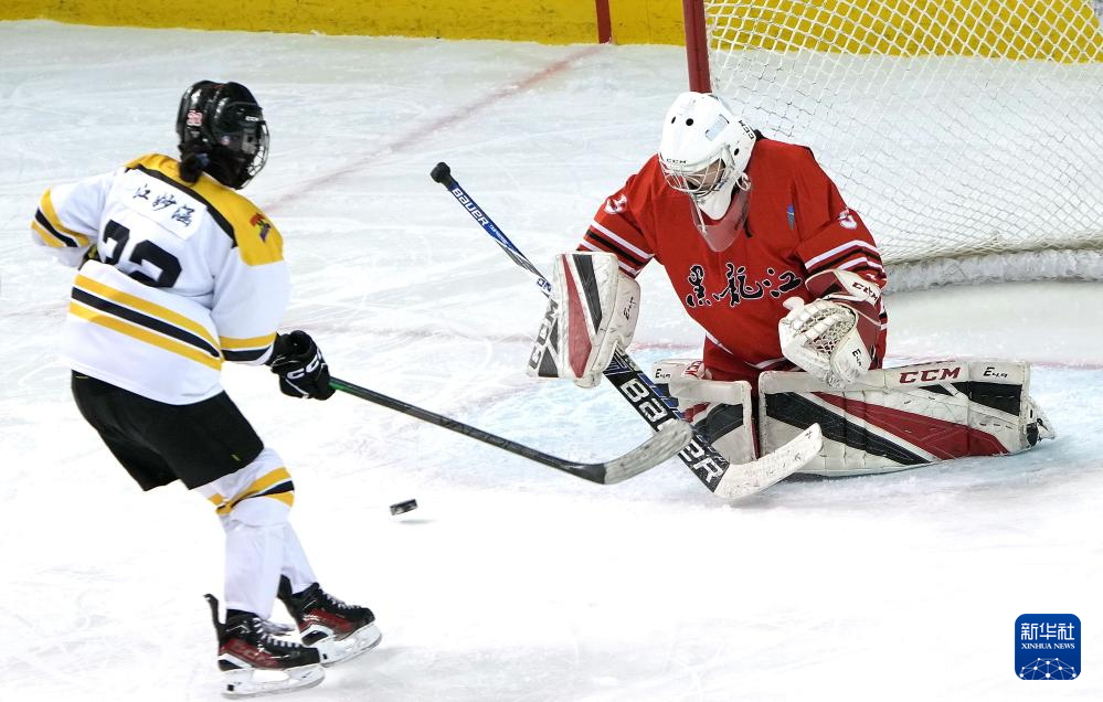 当日,在内蒙古冰上运动训练中心冰球馆举行的第十四届全国冬季运动会冰球项目女子青年组淘汰赛中,辽宁队4比0战胜黑龙江队。