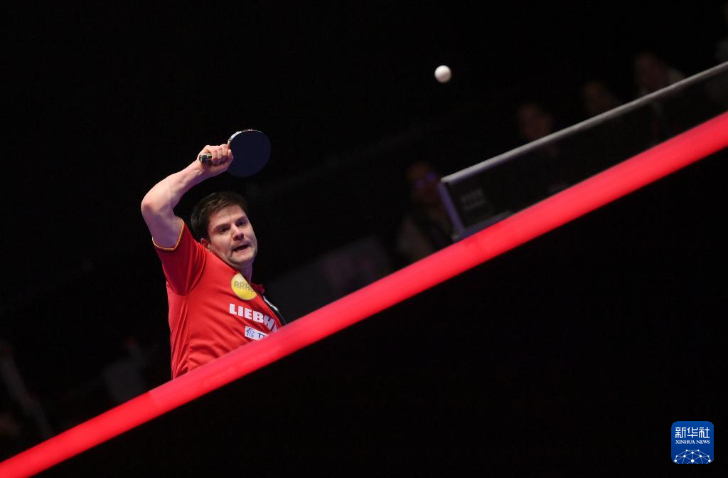 2月23日,德国队选手迪米特里·奥恰洛夫在比赛中回球。他2比3不敌中国台北队选手林昀儒。新华社记者 陶希夷 摄