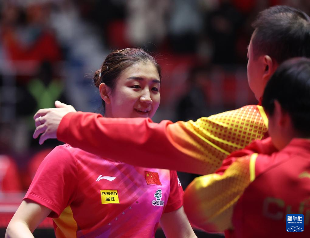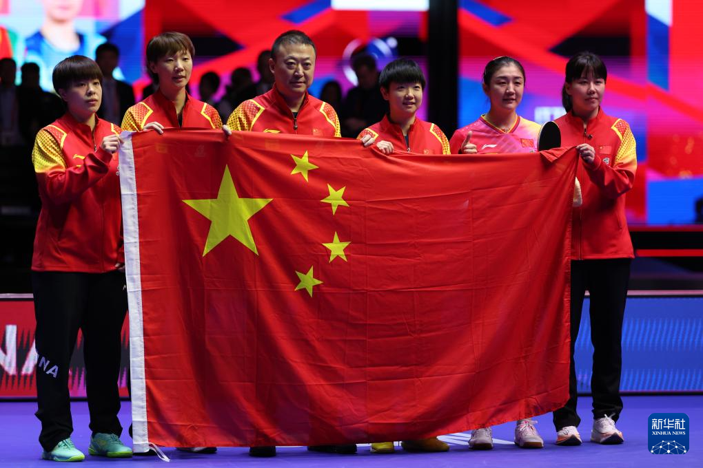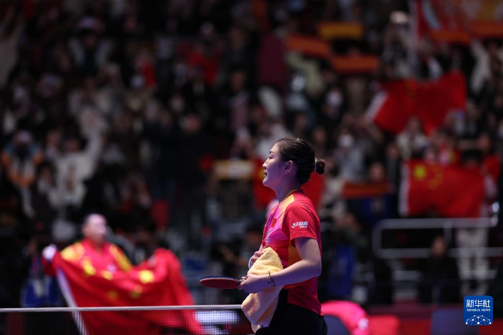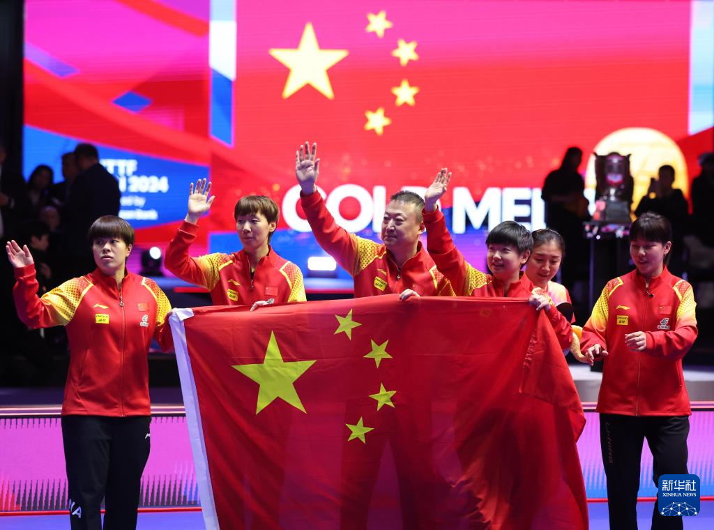 当日,在韩国釜山进行的2024年国际乒联釜山世界乒乓球团体锦标赛女子团体决赛中,中国队3比2战胜日本队,夺得冠军。