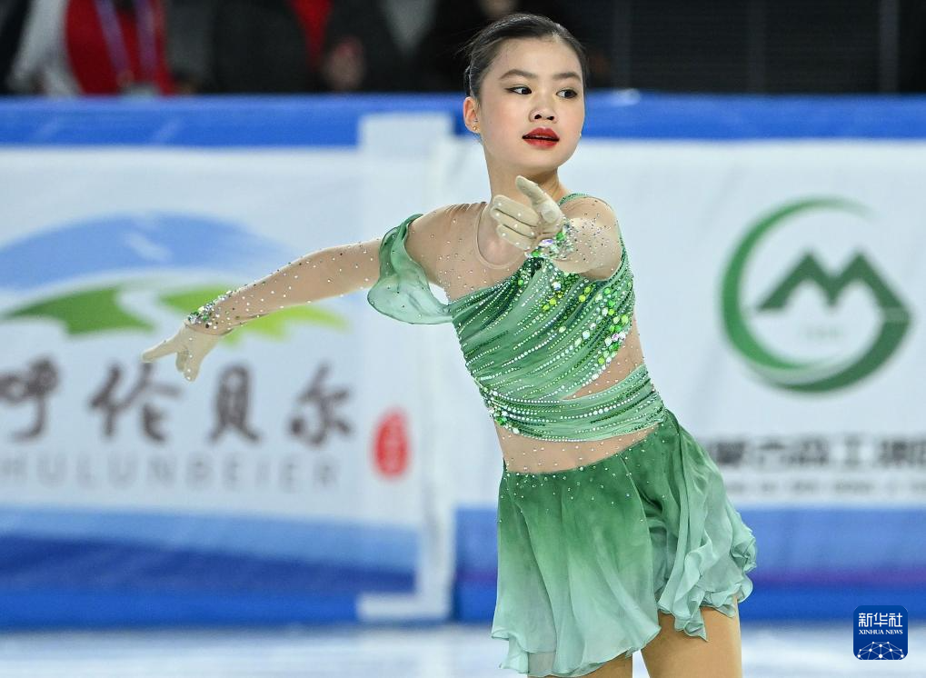 2月21日,香港队选手郭幸怡在第十四届全国冬季运动会花样滑冰公开组团体赛女子单人滑短节目比赛中。