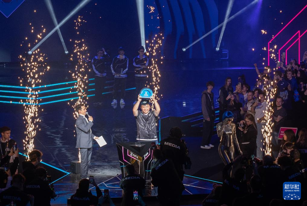 2月24日,Xtreme Gaming战队的选手XinQ(赵子星)获得赛事MVP。新华社记者 孟菁 摄