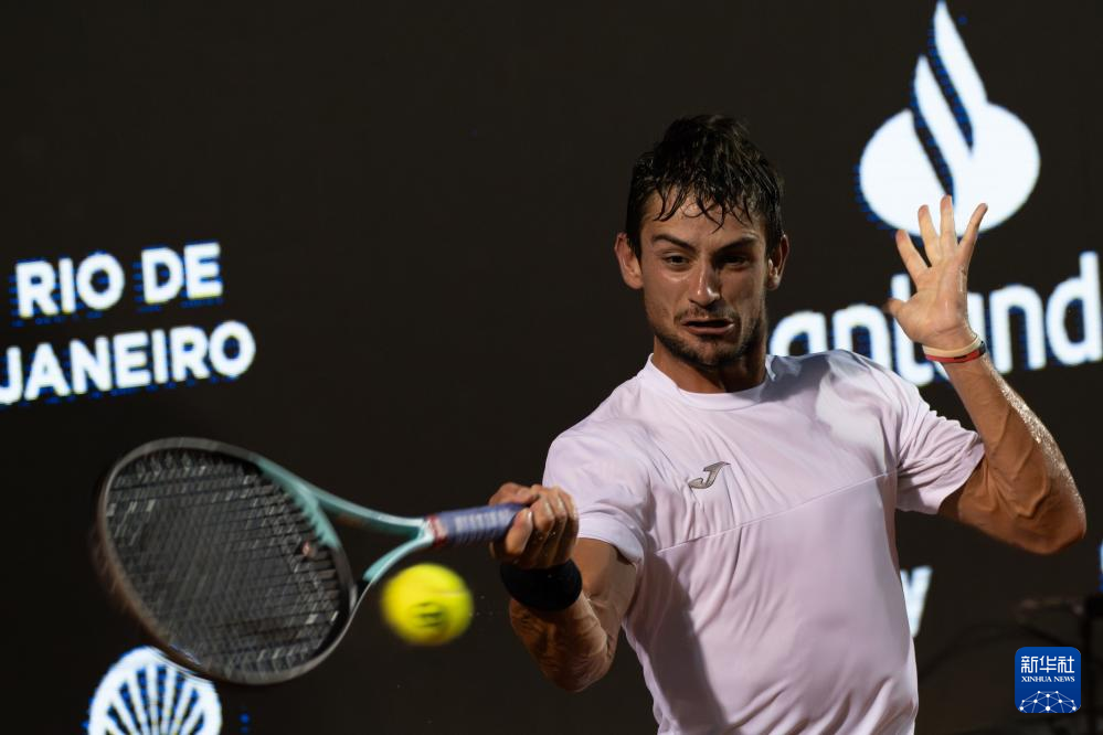 2月25日,塞瓦斯蒂安·巴埃斯在比赛中回球。新华社发(克劳迪娅·马尔提尼摄)