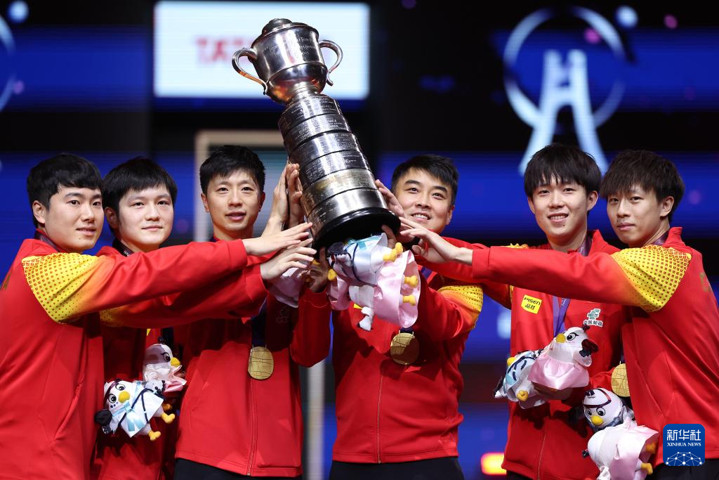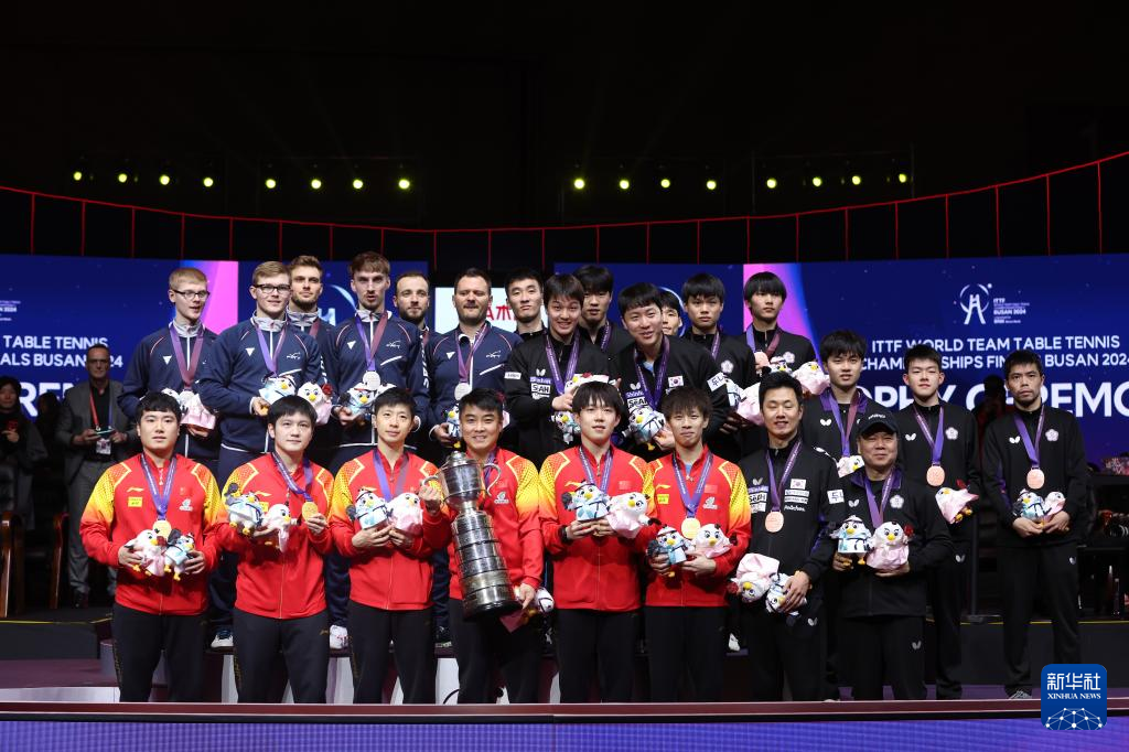 当日,在韩国釜山进行的2024年国际乒联釜山世界乒乓球团体锦标赛男子团体决赛中,中国队3比0战胜法国队,夺得冠军。