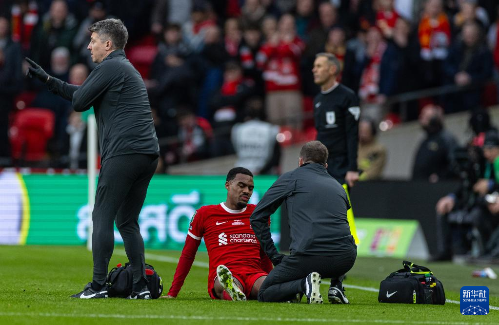 2月25日,利物浦队球员赫拉芬贝赫(中)在比赛中因伤接受治疗。新华社发