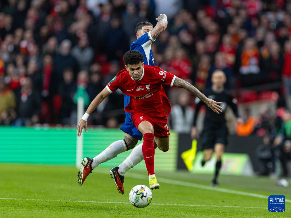 2月25日,利物浦队球员迪亚兹(前)在比赛中拼抢。新华社发